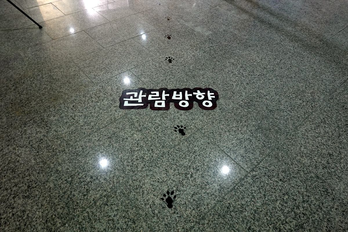 로비의 안내데스크 근처 바닥에는 수달 발자국으로 관람 방향을 표시해두었다.