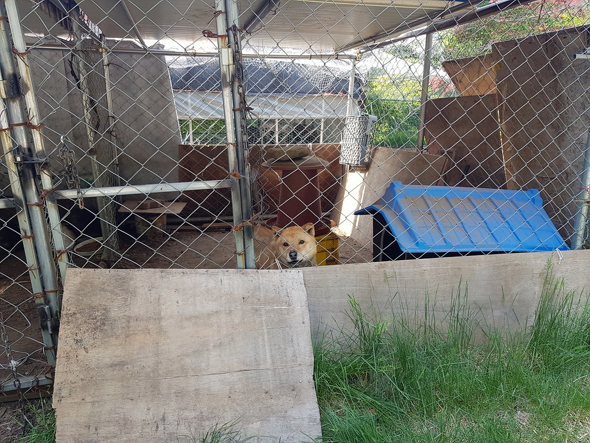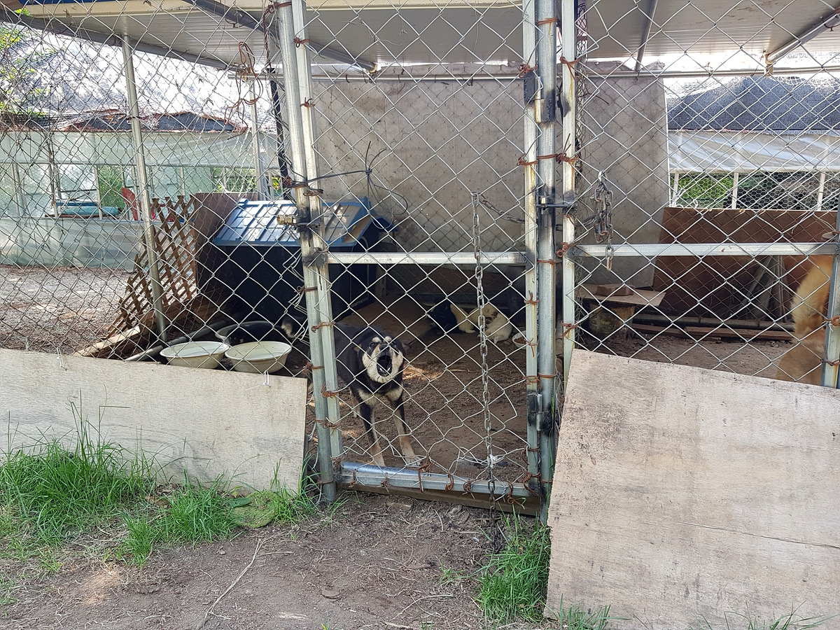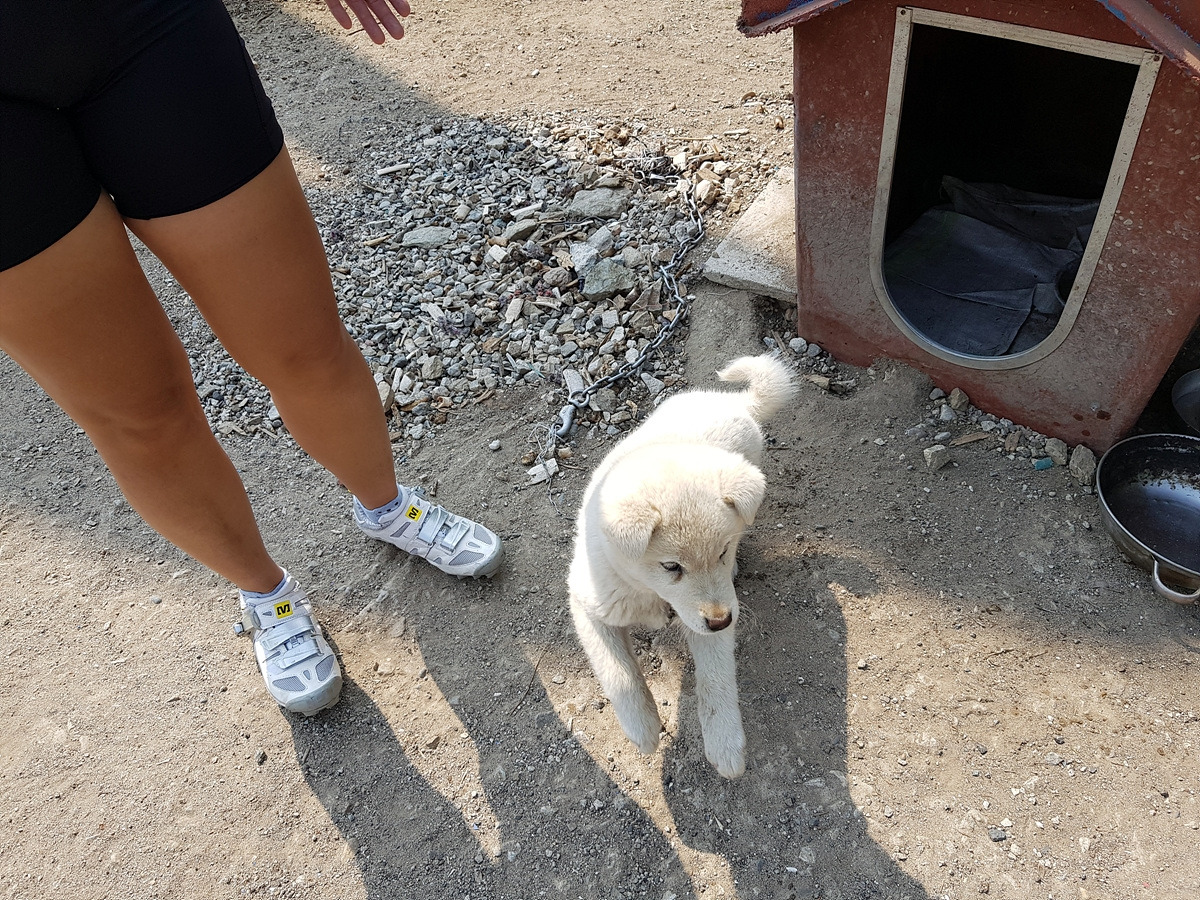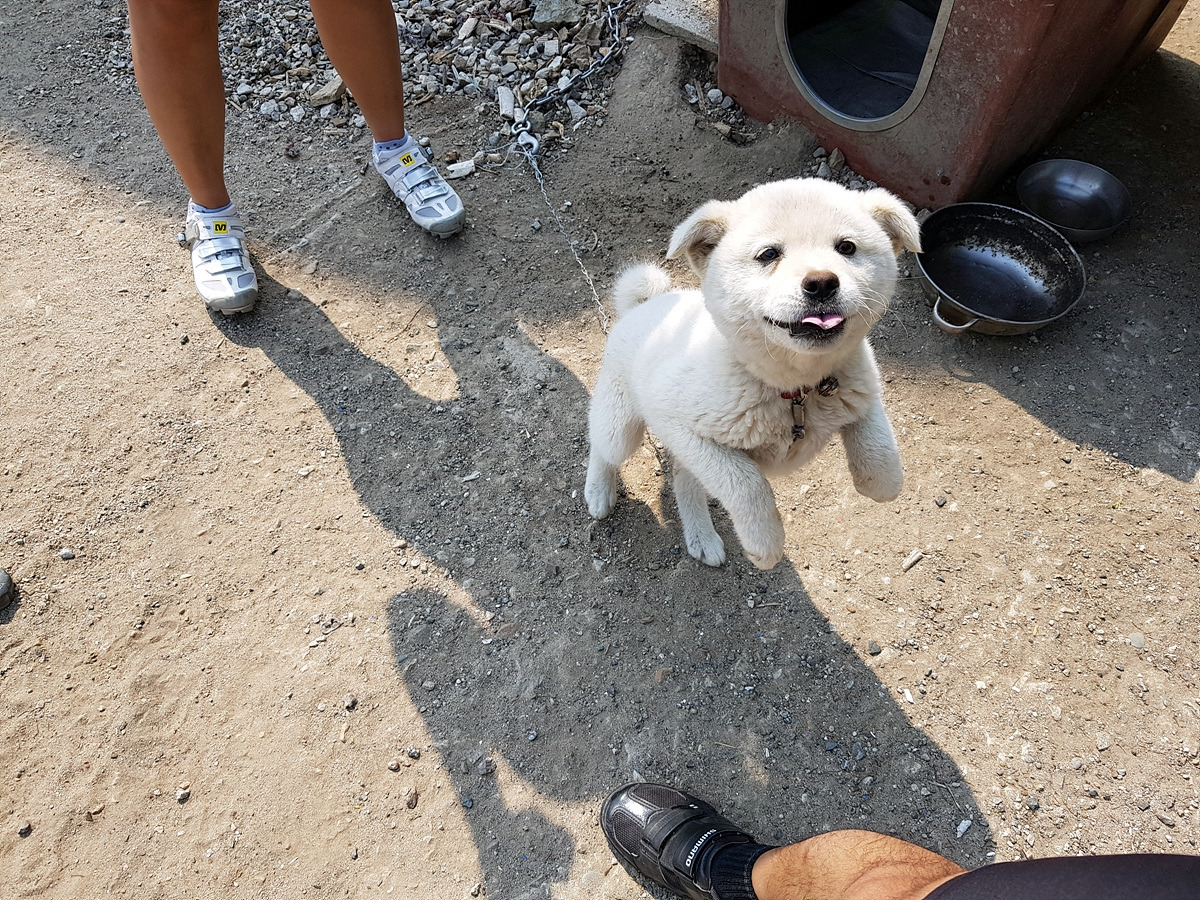 길 가에 개들이 엄청 짖는다. 얼마 전까지 목줄 없이 풀려있어 자전거 타는 사람들을 쫓아와서 위협하던 놈들인데 새끼를 낳아서 그런지 다행히 갇혀있다.