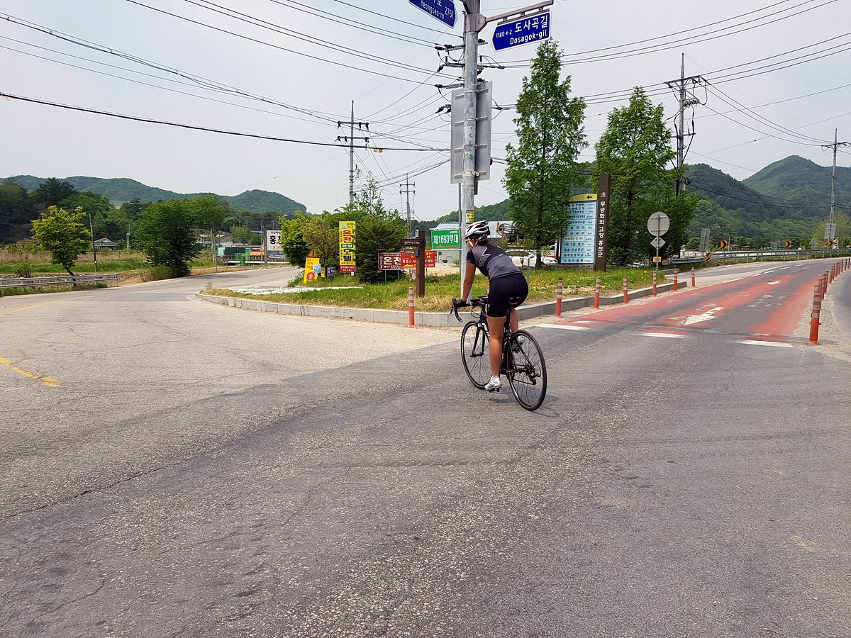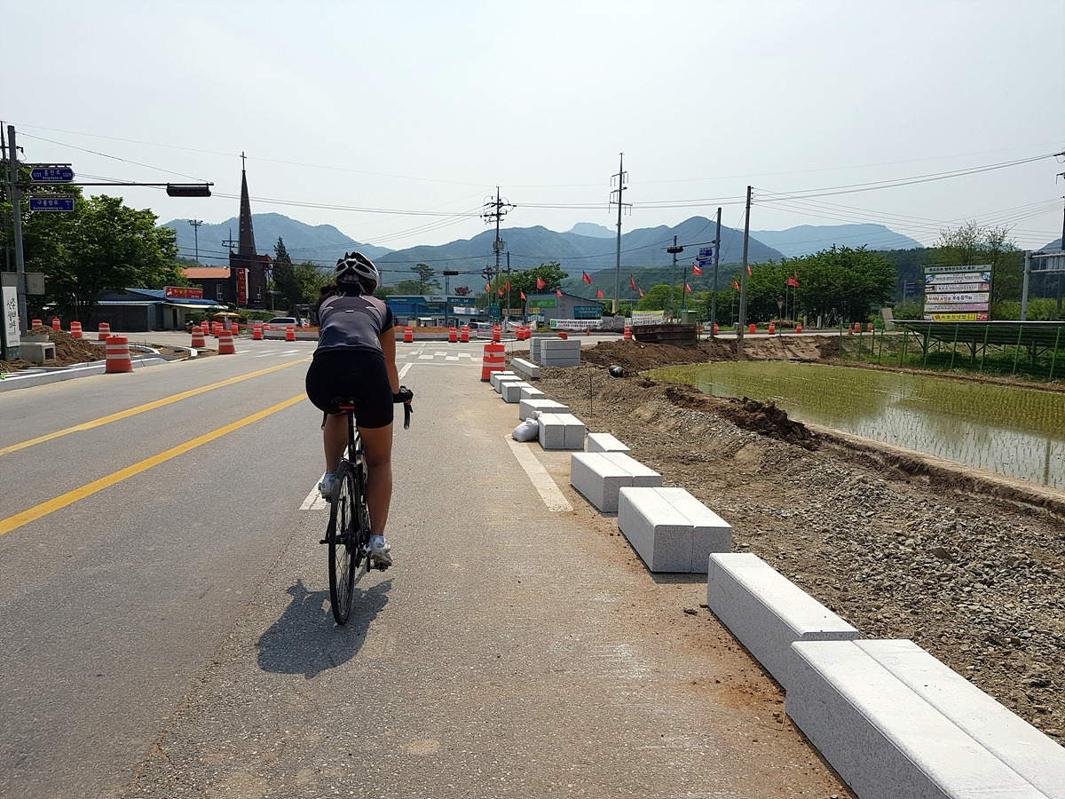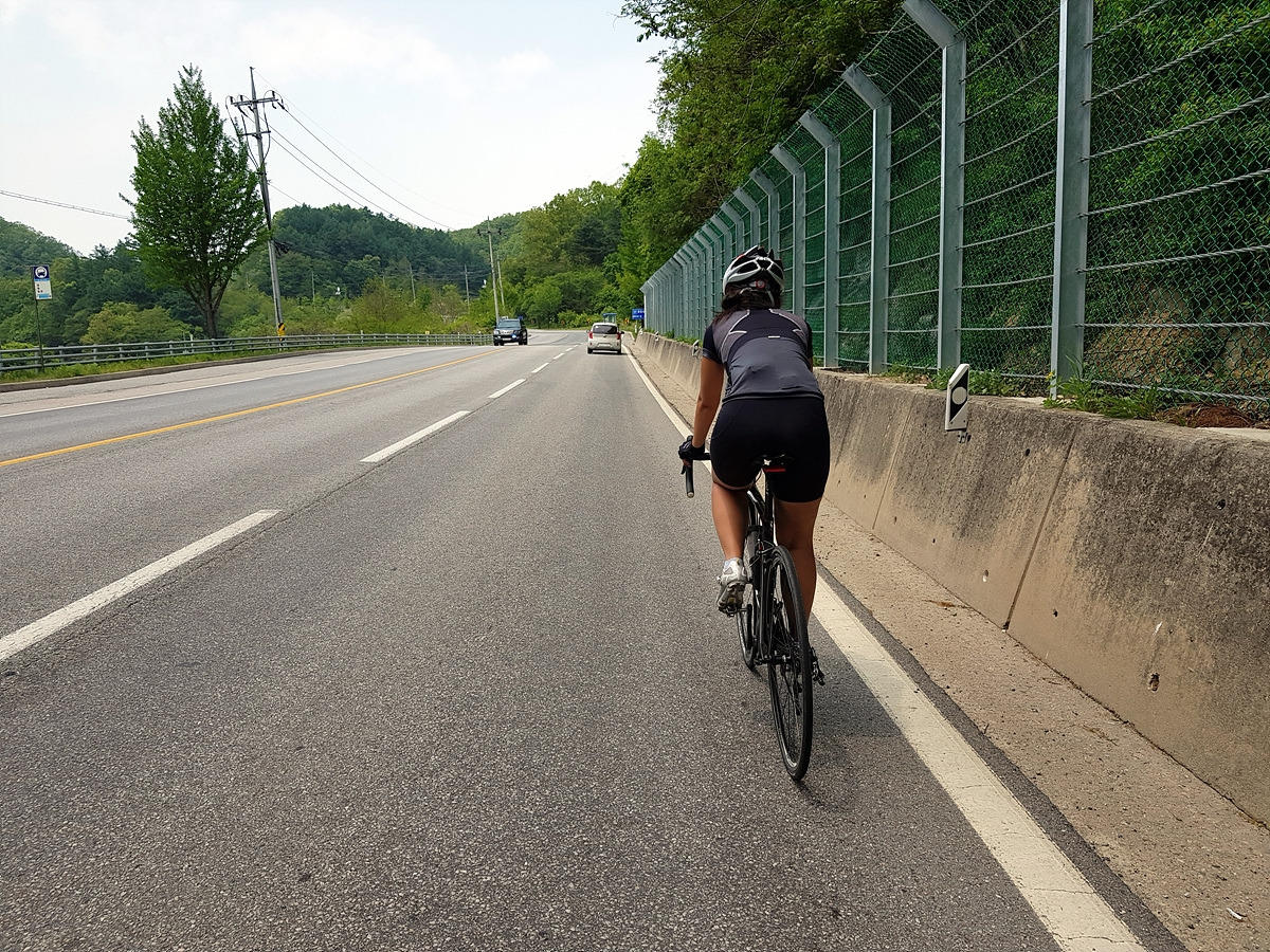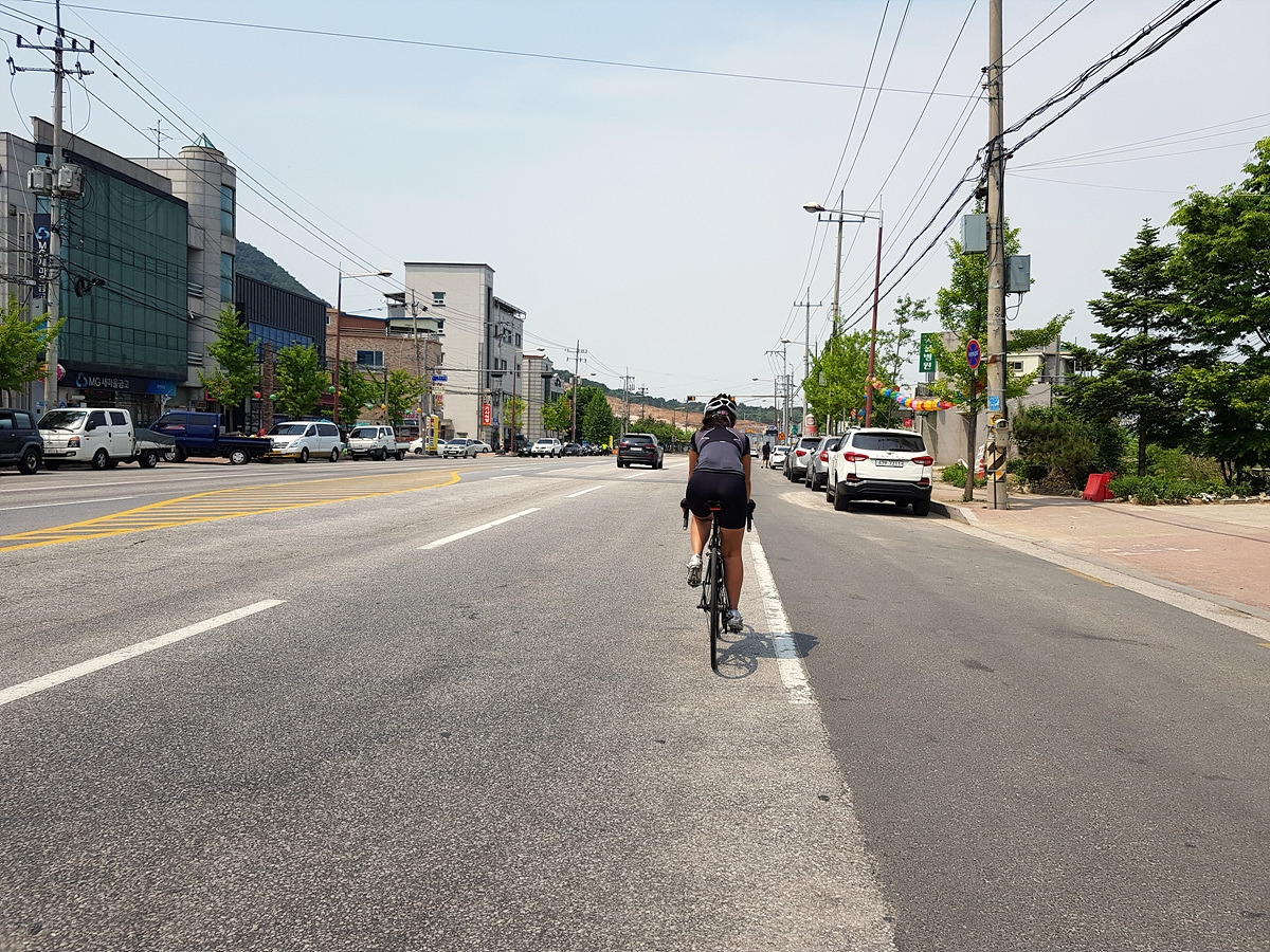 자전거 도로에 이물질이 너무 많아서 참을 수가 없다. 차량 통행도 거의 없는 길이니 그냥 도로로 나온다. 어차피 곧 자전거도로도 끝난다.
