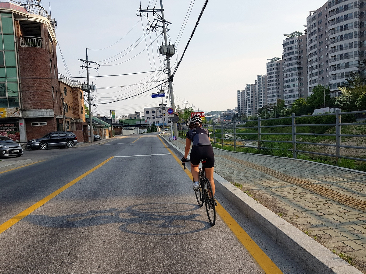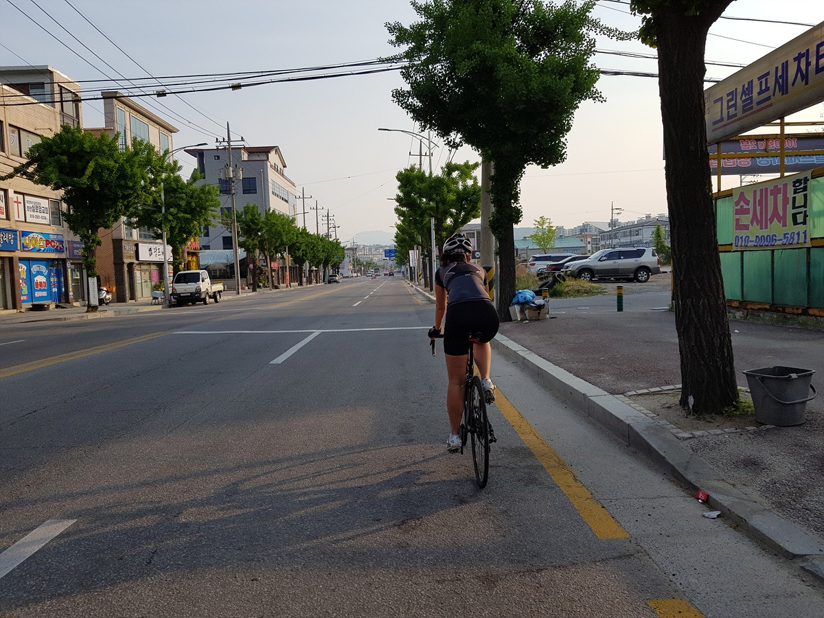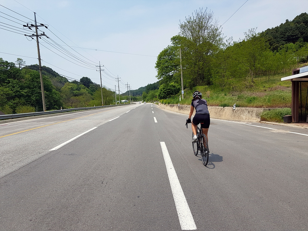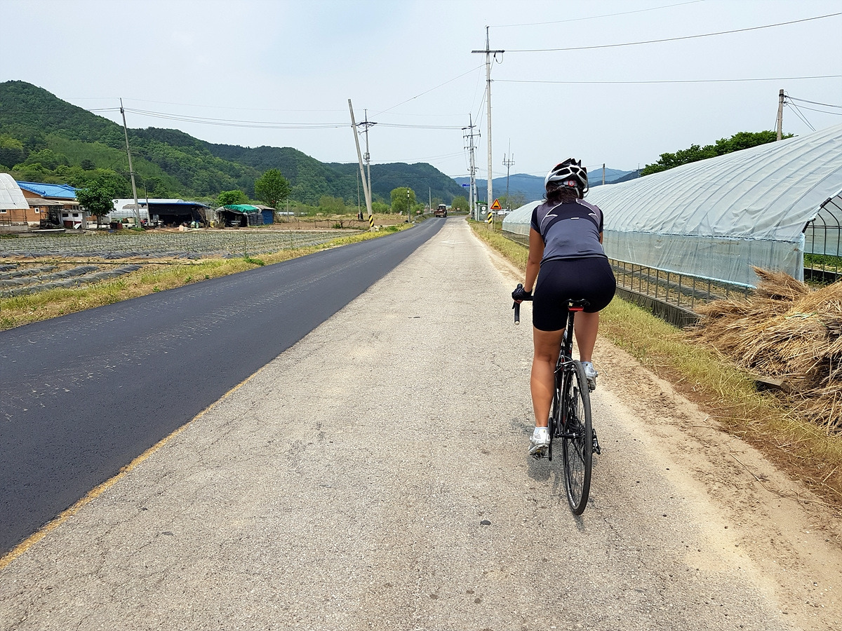 자전거 도로에 이물질이 너무 많아서 참을 수가 없다. 차량 통행도 거의 없는 길이니 그냥 도로로 나온다. 어차피 곧 자전거도로도 끝난다.