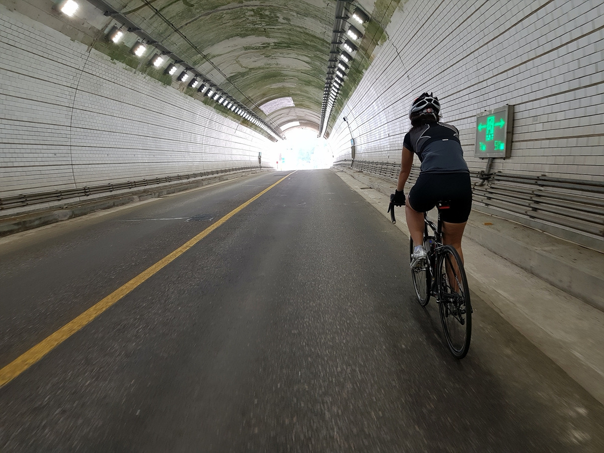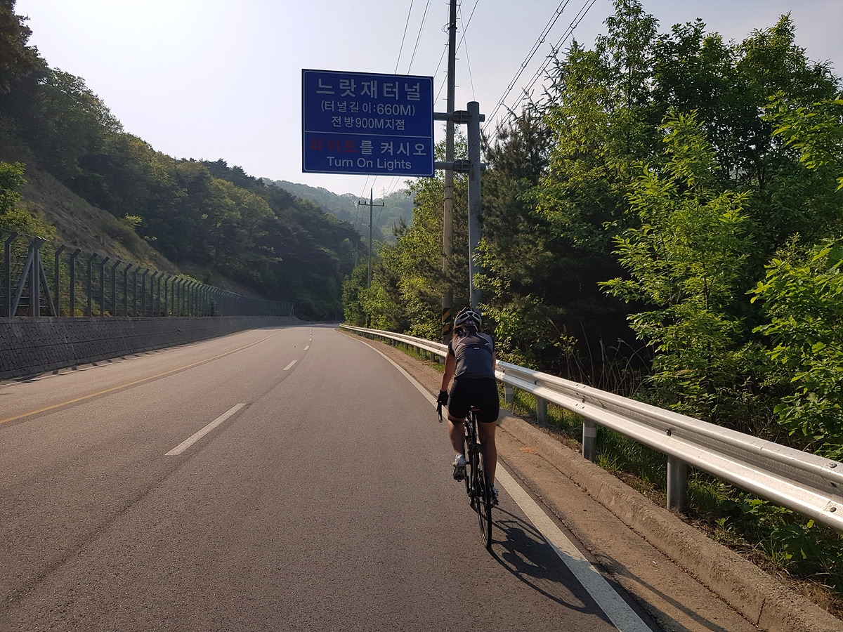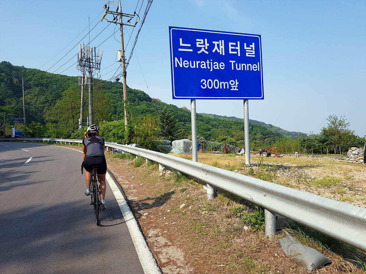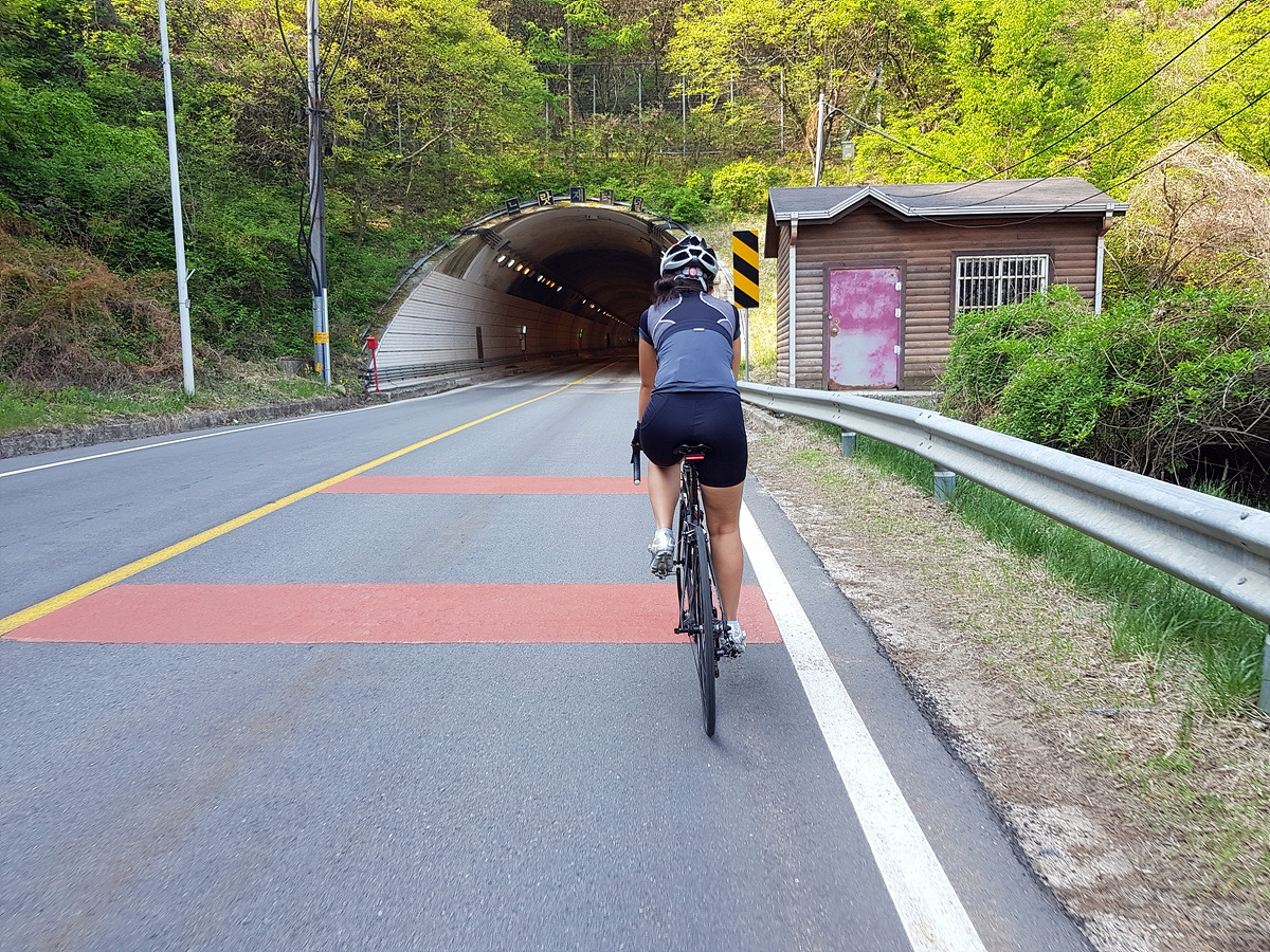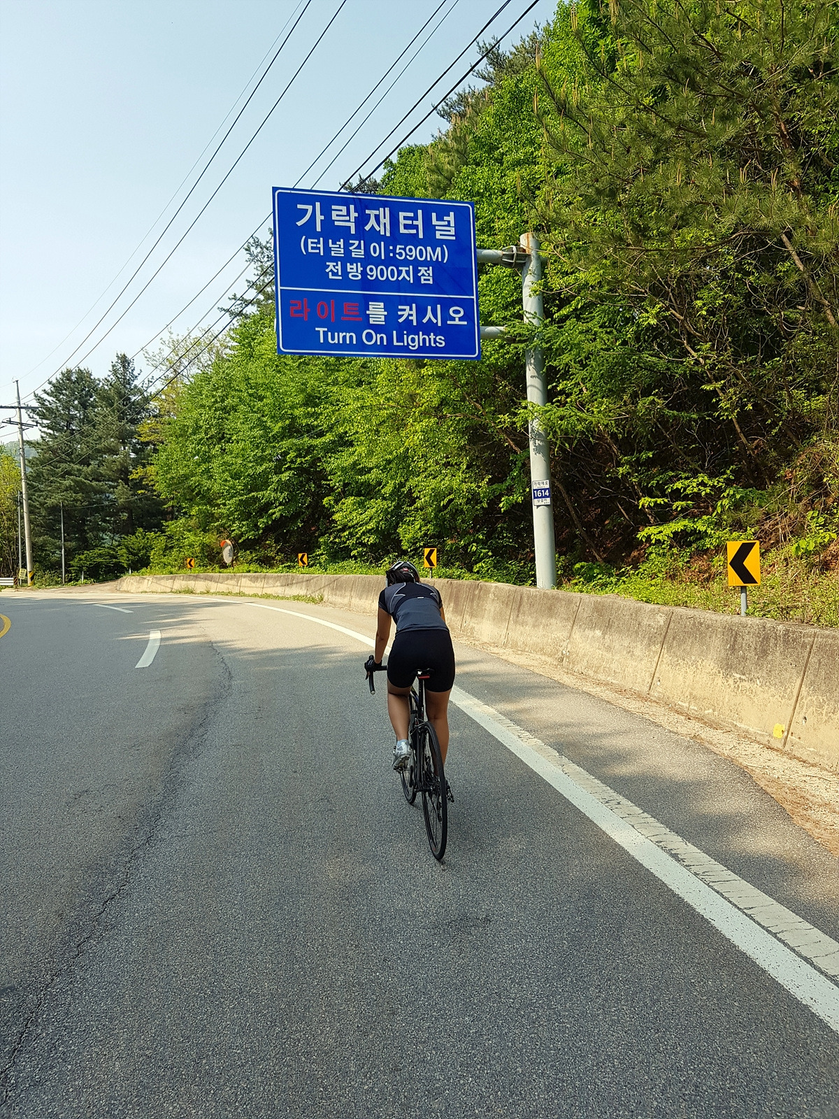 터널이 있는 길은 보통 터널이 최정상이다. 900m 남았다. 차로는 금방이겠지만 자전거로 오르막길 900m는 은근히 먼 거리다.
