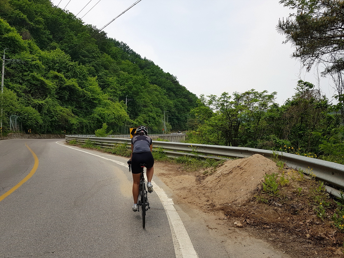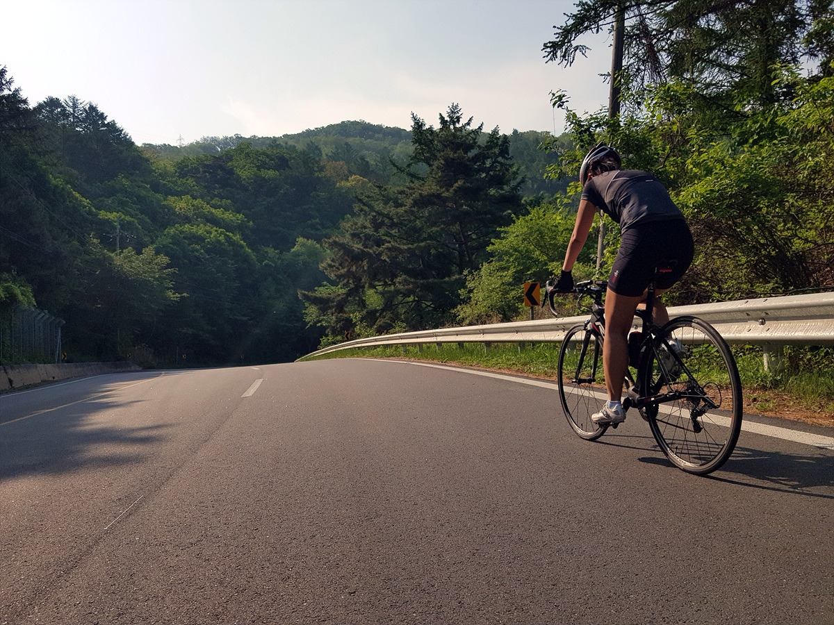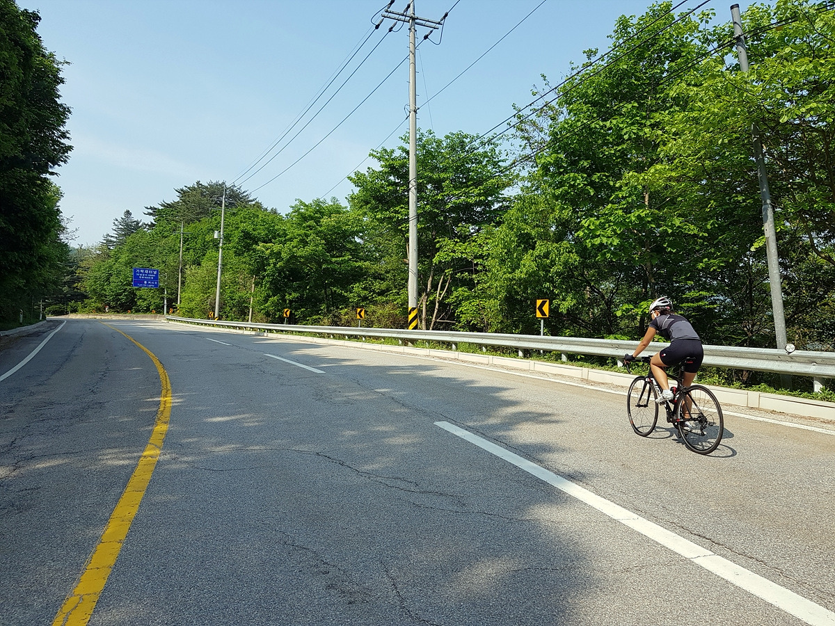정상에서부터 쭉 타고 내려가는데 맞은편에서 수십 명의 자전거 동호인들이 잔뜩 올라가고 있다. 이 시간에 출발하는 걸 보니 원모덕 정도 가는 듯하다. 춘천 사람들이 가볍게 탈 때는 원모덕이라 하는 운동 코스를 많이 가는데 원창고개, 모래재, 덕만이 고개를 일컫는다. 원창고개, 모래재로 홍천강으로 넘어와서 팔봉산 유원지에서 덕만이 고개로 돌아가는 코스다.