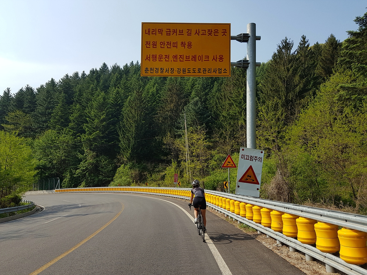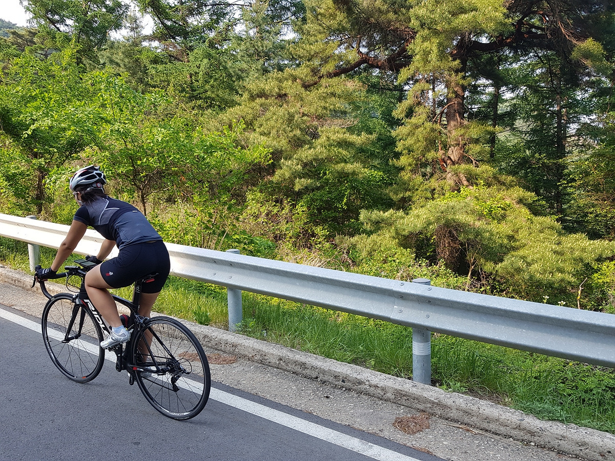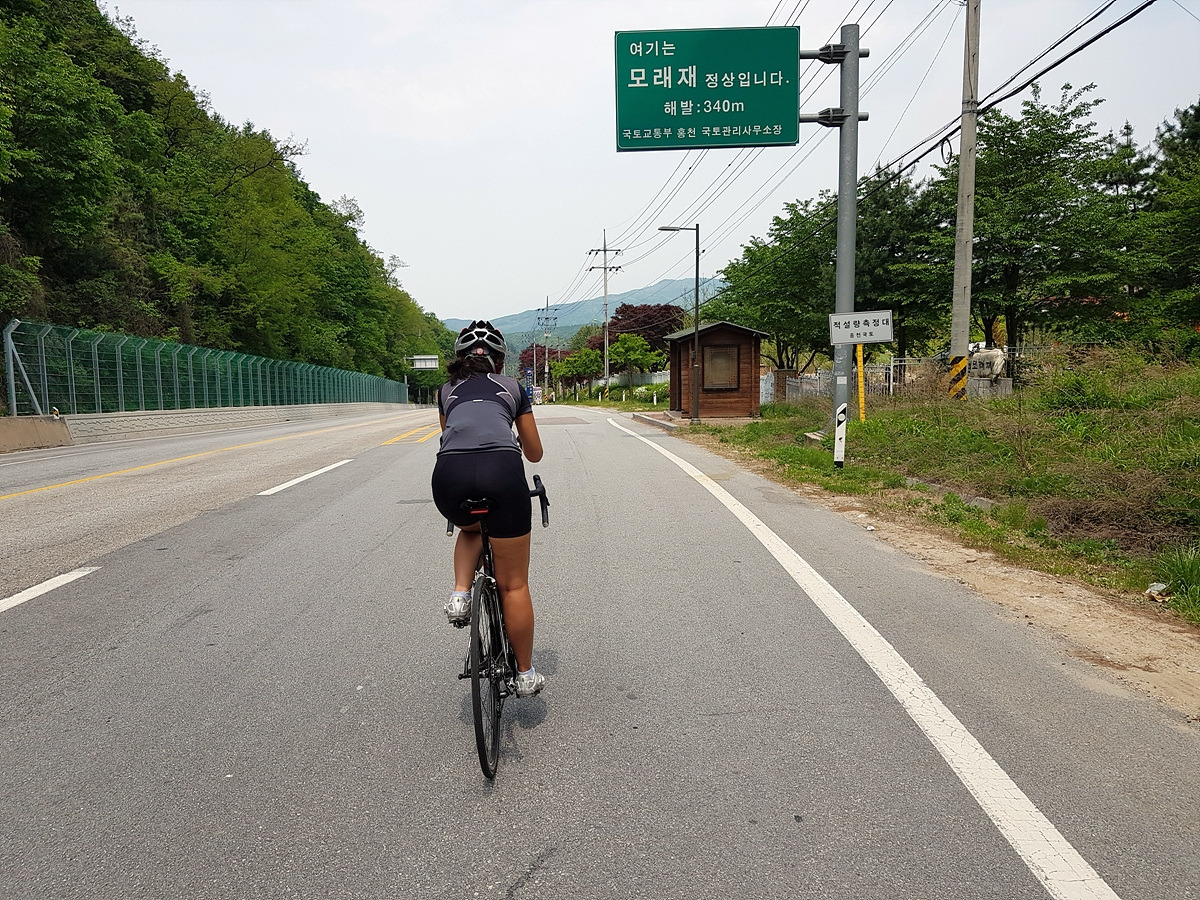 정상에서부터 쭉 타고 내려가는데 맞은편에서 수십 명의 자전거 동호인들이 잔뜩 올라가고 있다. 이 시간에 출발하는 걸 보니 원모덕 정도 가는 듯하다. 춘천 사람들이 가볍게 탈 때는 원모덕이라 하는 운동 코스를 많이 가는데 원창고개, 모래재, 덕만이 고개를 일컫는다. 원창고개, 모래재로 홍천강으로 넘어와서 팔봉산 유원지에서 덕만이 고개로 돌아가는 코스다.