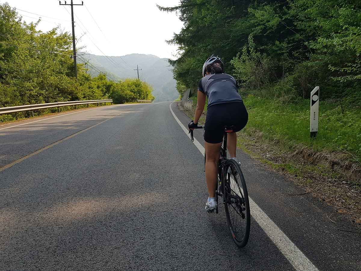 계속 달리면 내리막을 쭉 내려다 가다 마을을 지나 다시 오르막이 나온다. 오늘은 웬 자동차 모임이 있는지 불나기로 유명한 외제차들이 시끄럽게 잔뜩 지나간다. 주말에 시골을 다닐 때면 일부러 시끄럽게 만든 차들로 왜 이런 시골 구석까지 온통 시끄럽게 만드는지 이해가 안 된다. 드라이브를 하더라도 산새 소리 울리는 조용한 시골에 어울리게 조용한 차들로 왔으면 좋겠다.