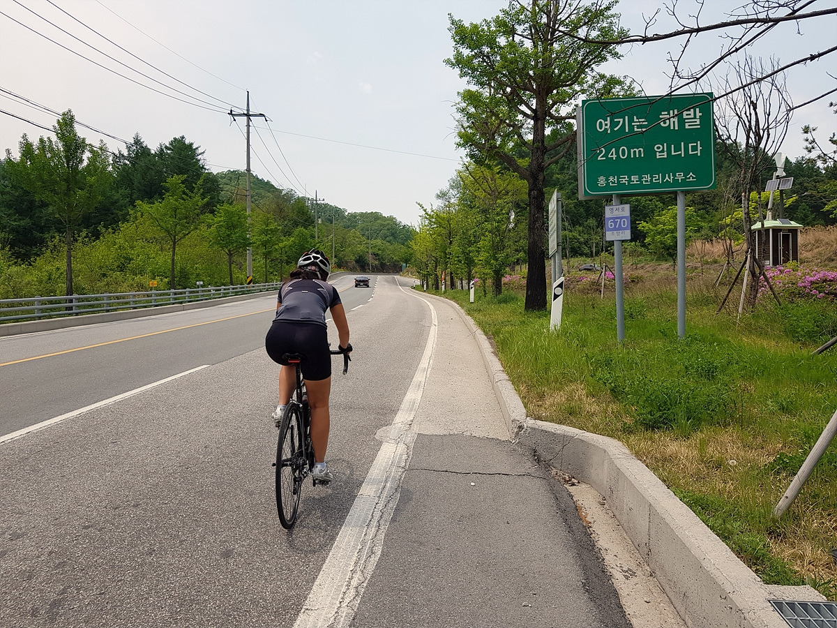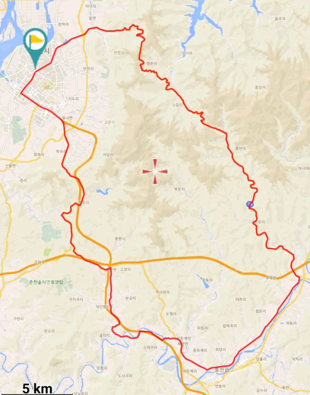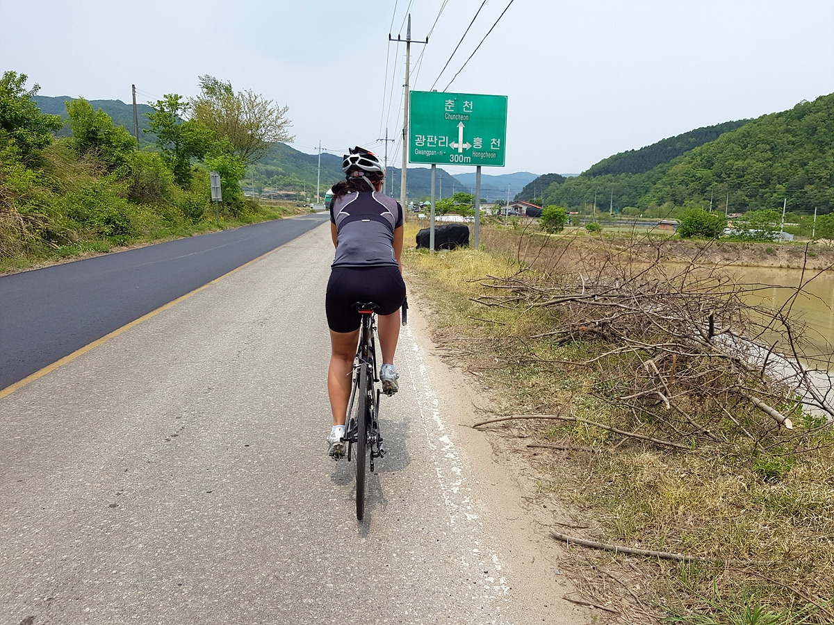 이번 코스는 춘천과 홍천 사이의 차량 통행은 적은 작은 길들을 연결한 코스다. 크게 높지 않은 오르막길이 계속 나타나는 약간은 힘든 코스지만 언덕길 때문에 힘들다는 것은 긍정적으로 생각하면 그만큼 훈련하기에 좋은 코스라 할 수 있다.