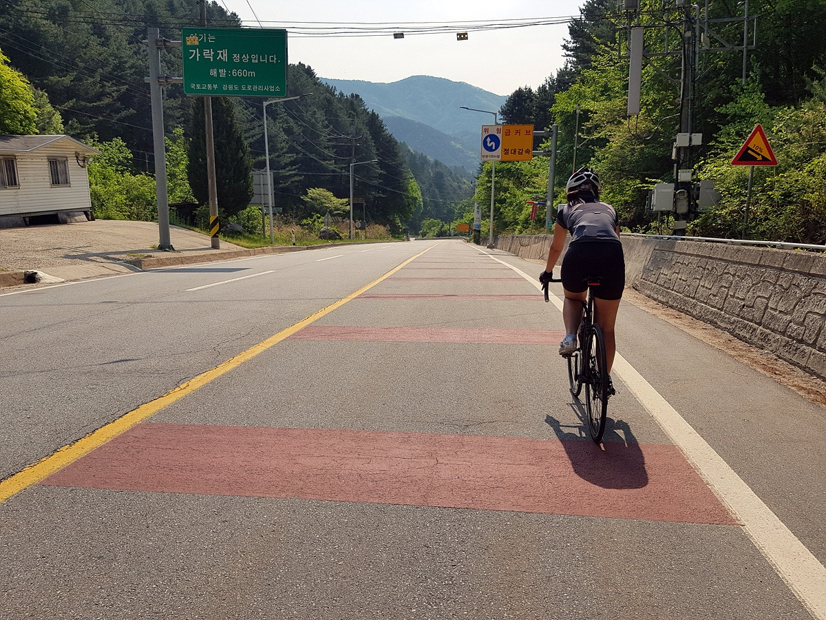 해발 660미터의 언덕길이다. 춘천 사람들은 운동 삼아서 느랏재 가락재를 묶어서 탄다.
