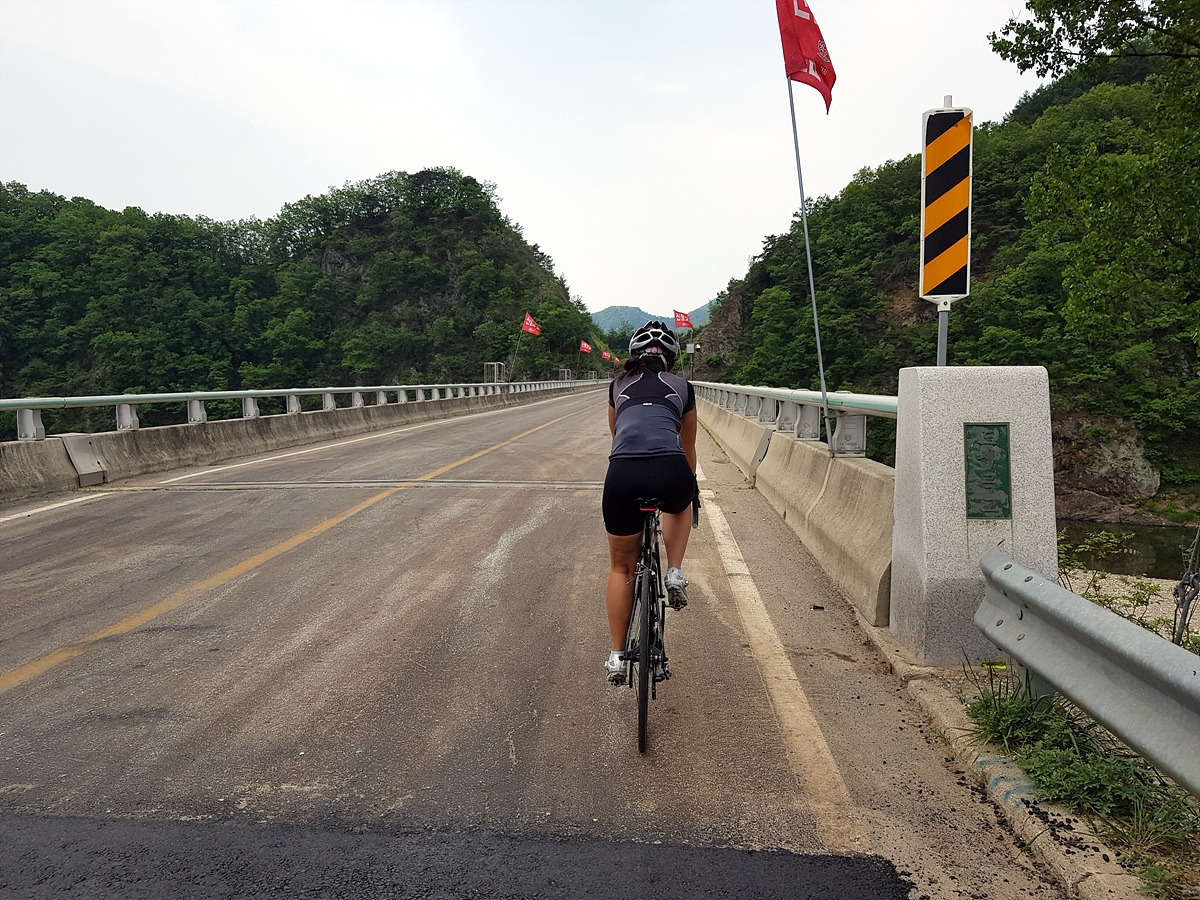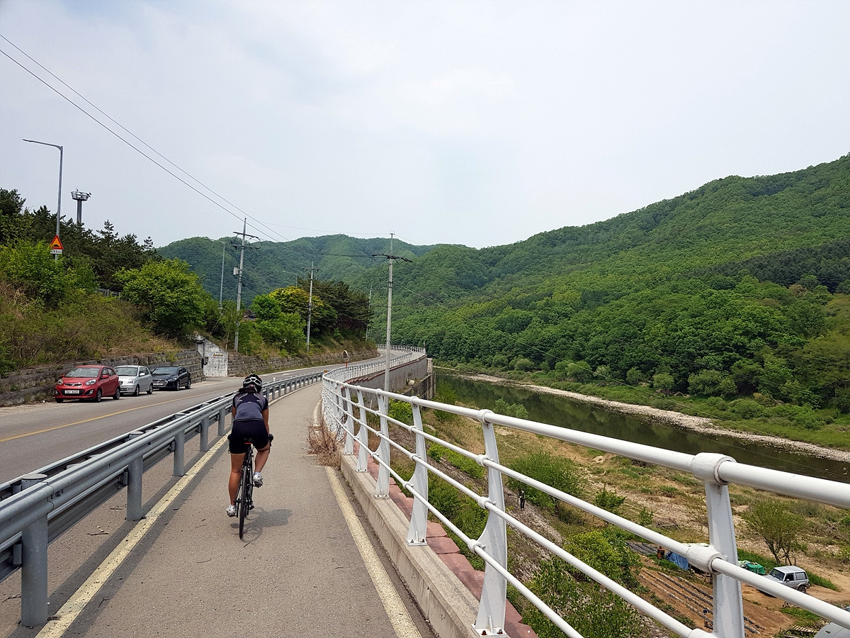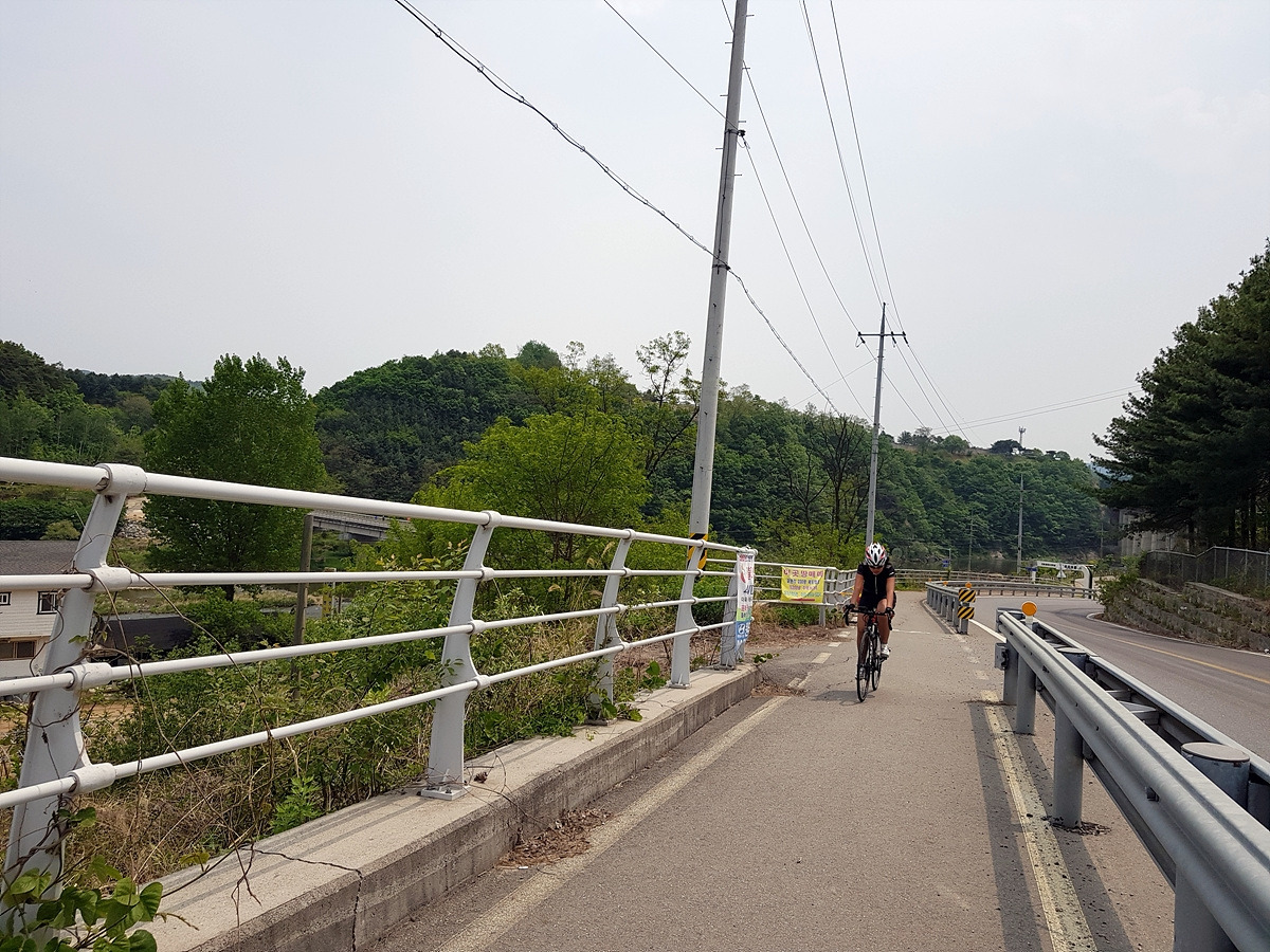 군부대 앞길로 작은 언덕을 넘어 다리를 건너면 중부 고속도로 옆으로 난 자전거길로 달려야 한다. 이제 도사곡까지 홍천강을 따라 달린다.