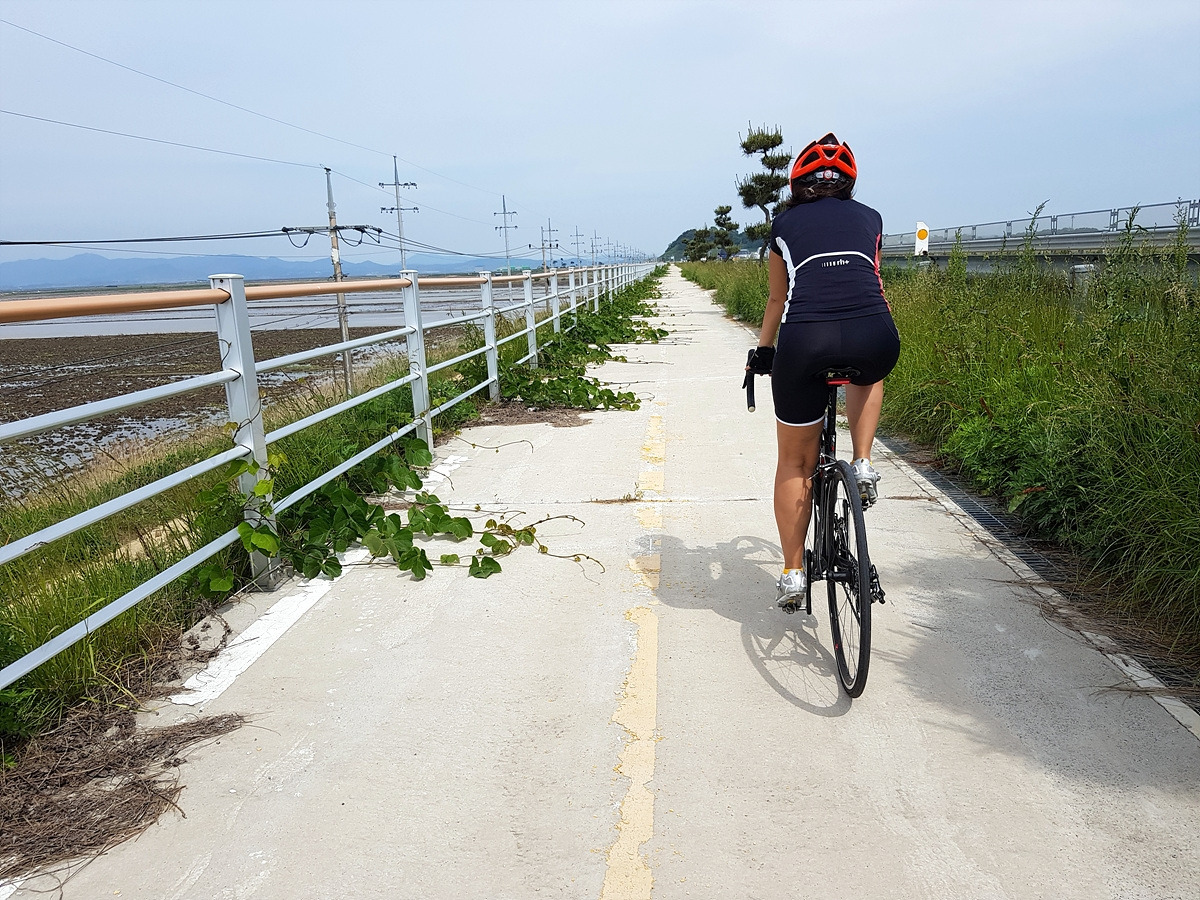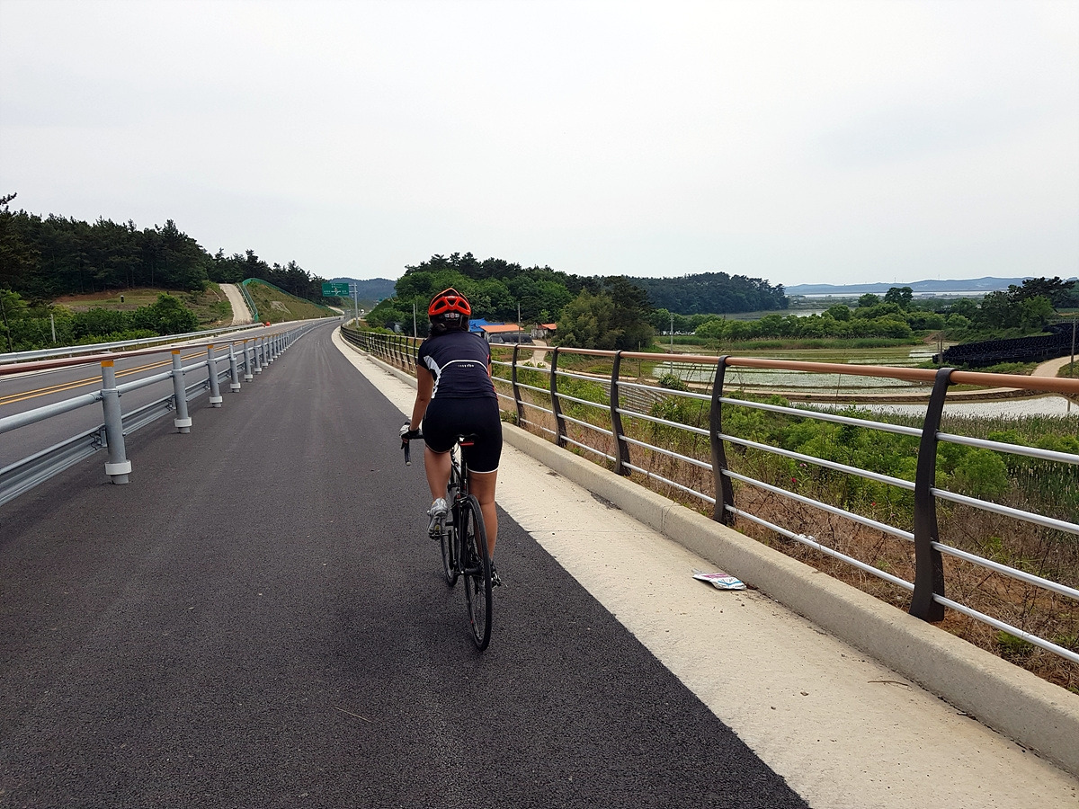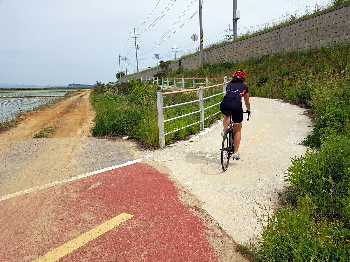 오늘은 적당히 흐리고 시원한 날이라 딱 좋은 날씨였지만 평지 자전거길이면서 가로수가 거의 없는 신작로가 많기 때문에 더운 날에 오면 나무 그늘이 없어서 아스팔트 위에 산채로 구워지기 딱 좋은 길이다. 다니기 가장 좋은 시기는 왕벚꽃이 피는 5월 초와 서산 간척지가 황금벌판이 되는 10월이라 할 수 있다.