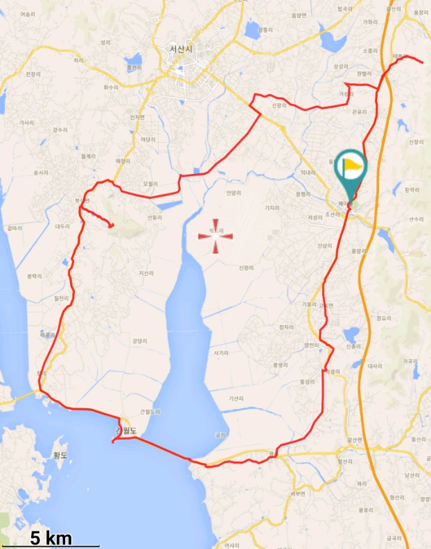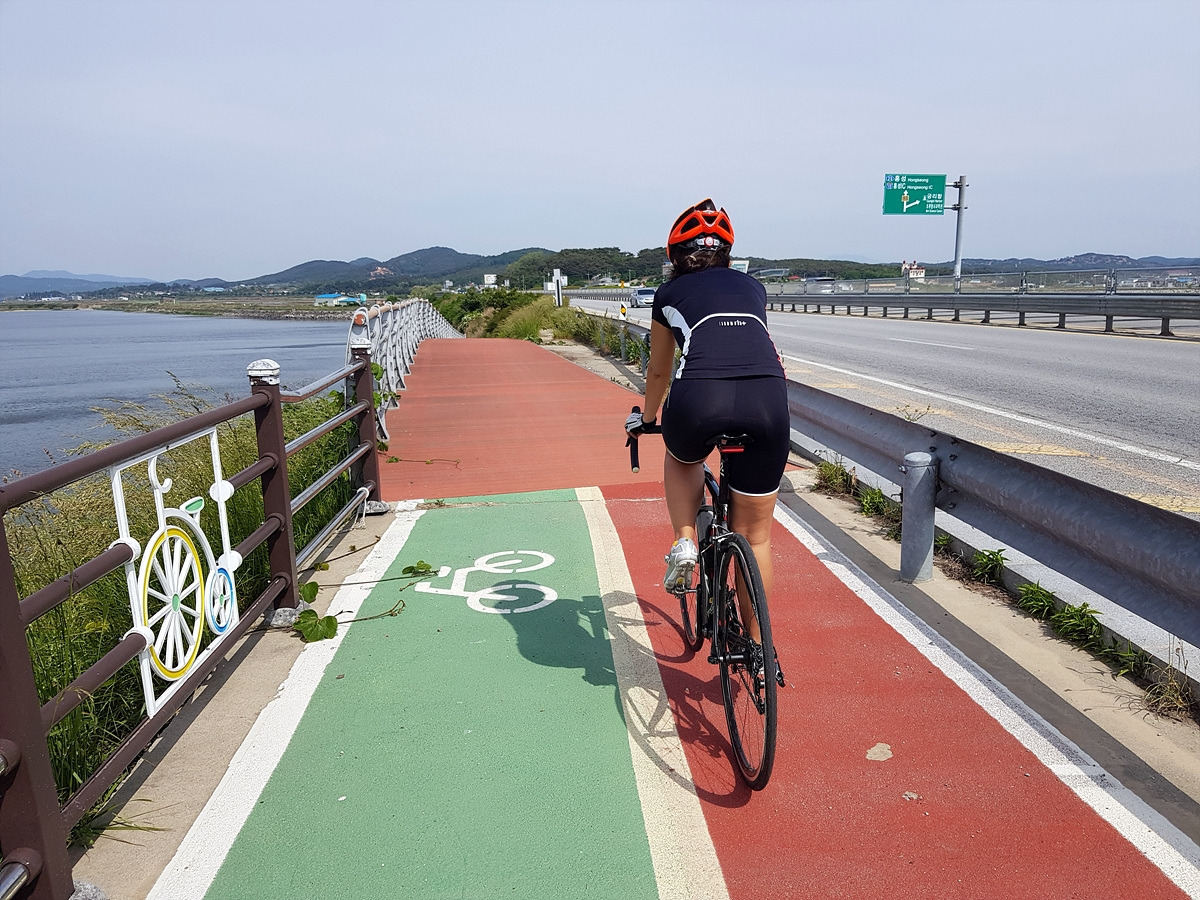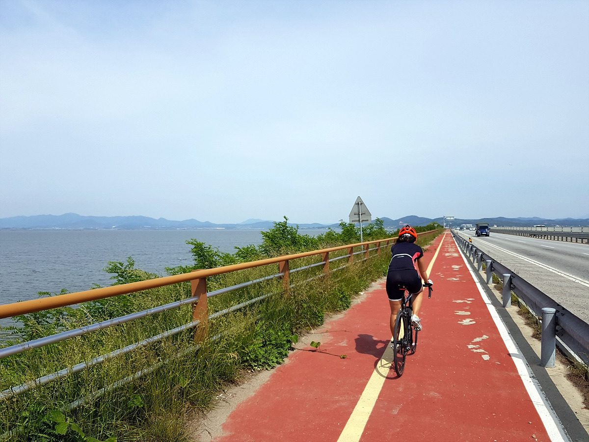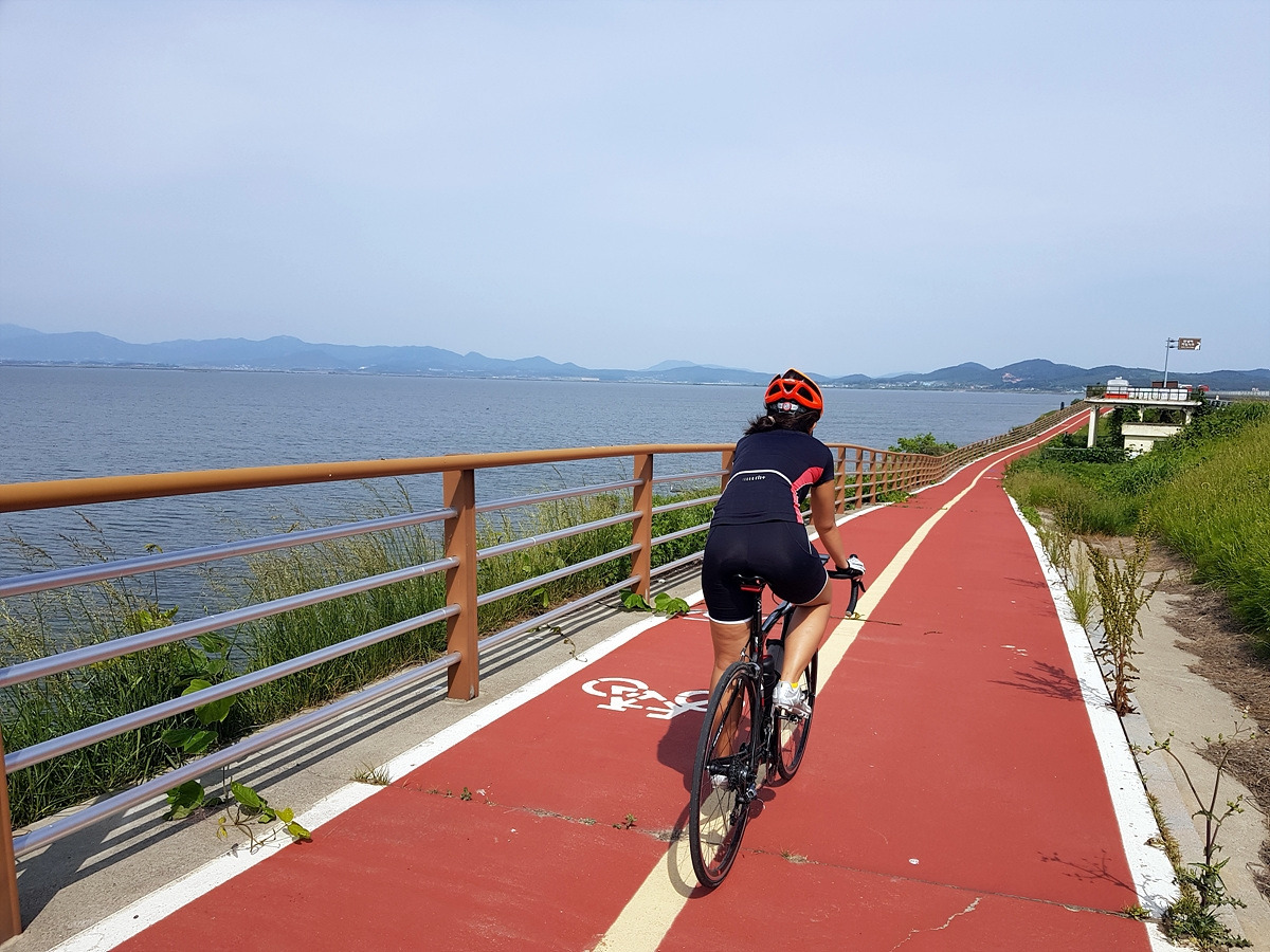 오늘은 적당히 흐리고 시원한 날이라 딱 좋은 날씨였지만 평지 자전거길이면서 가로수가 거의 없는 신작로가 많기 때문에 더운 날에 오면 나무 그늘이 없어서 아스팔트 위에 산채로 구워지기 딱 좋은 길이다. 다니기 가장 좋은 시기는 왕벚꽃이 피는 5월 초와 서산 간척지가 황금벌판이 되는 10월이라 할 수 있다.