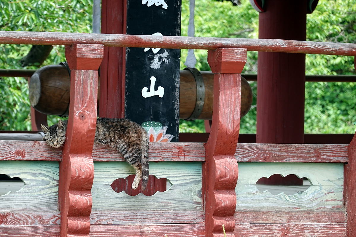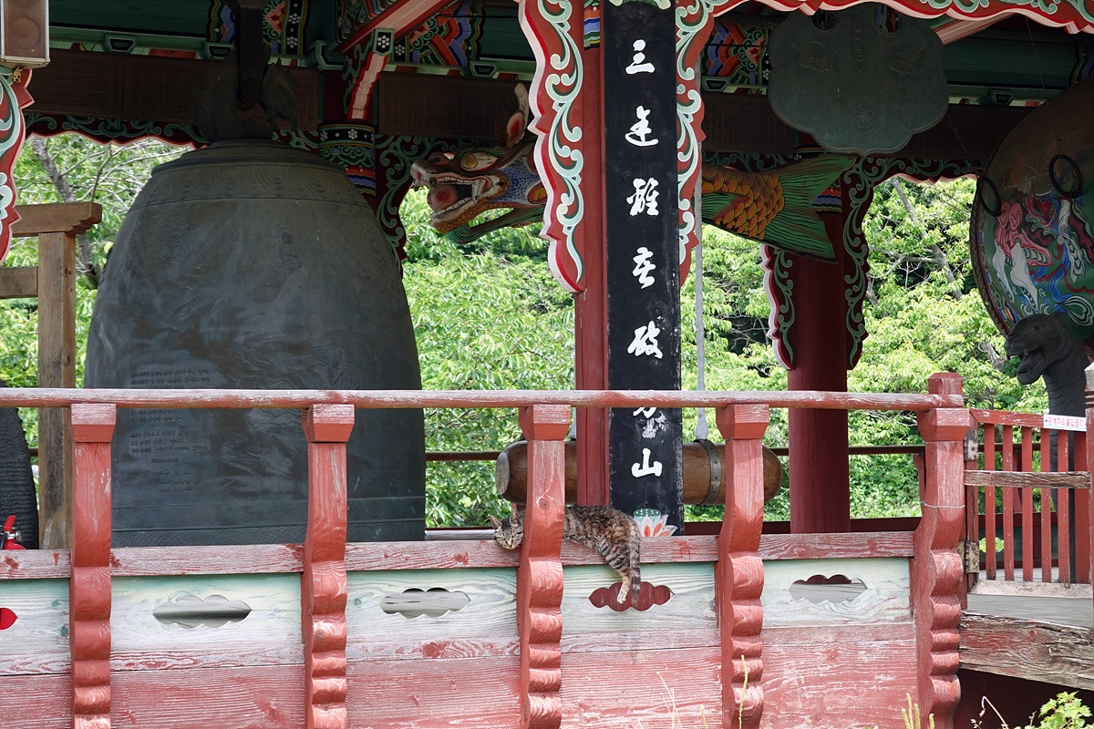 종각에 고양이 한 마리가 늘어져 있다. 사람을 경계하는 녀석이라 데리고 놀진 못한다.
