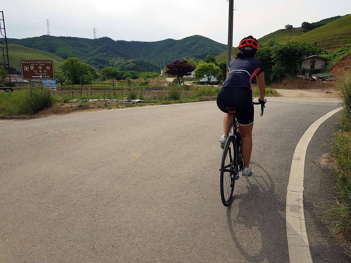 이정표를 따라서 문수사 방향으로 달린다. 작은 시골길이지만 포장이 아주 잘 되어 있다.
