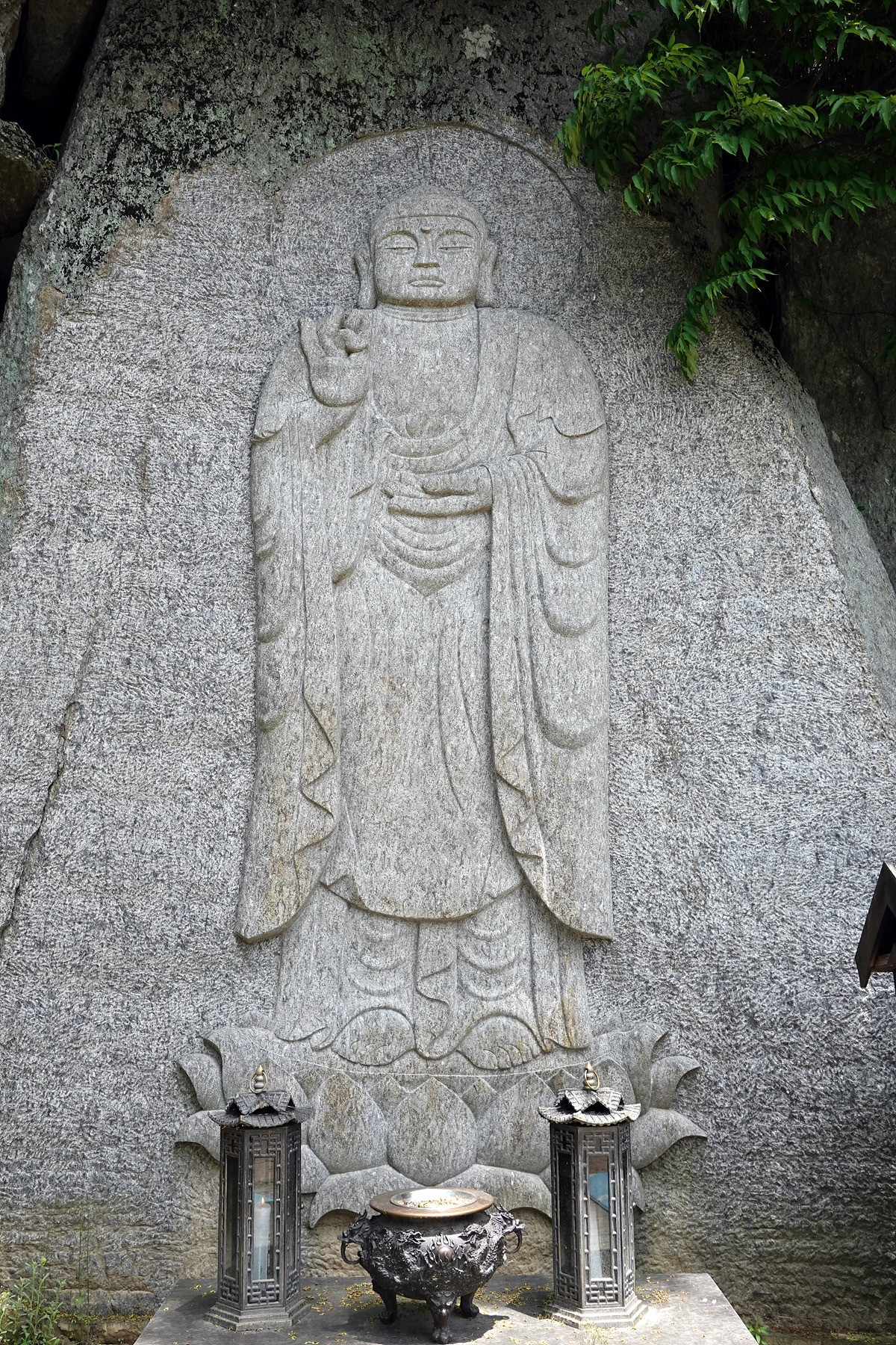 바위에 부처의 모습이 조각되어 있다.