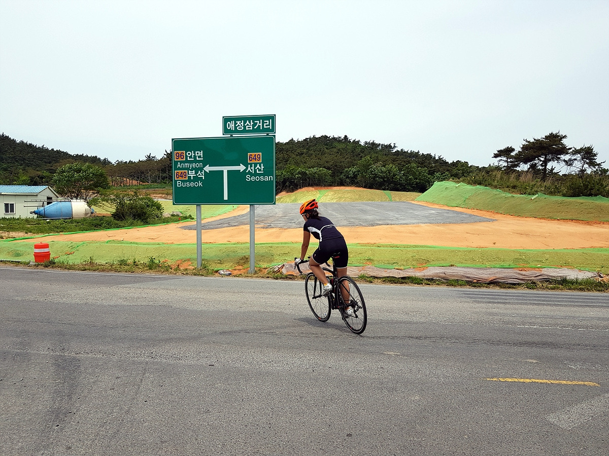 한적한 길은 애정 삼거리에서 끝나고 부석 방향으로 달린다. 여기는 서산에서 안면도 가는 방향이라 차량 통행이 조금 있다.