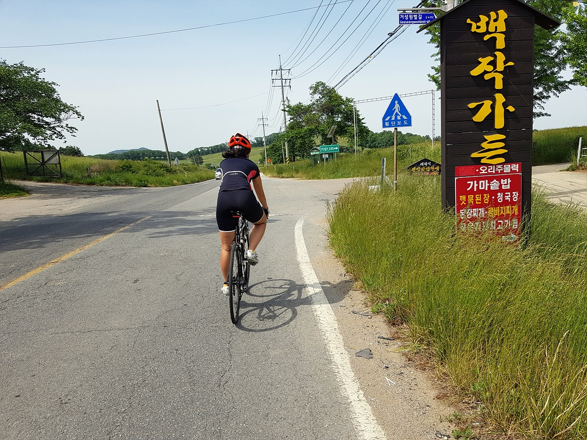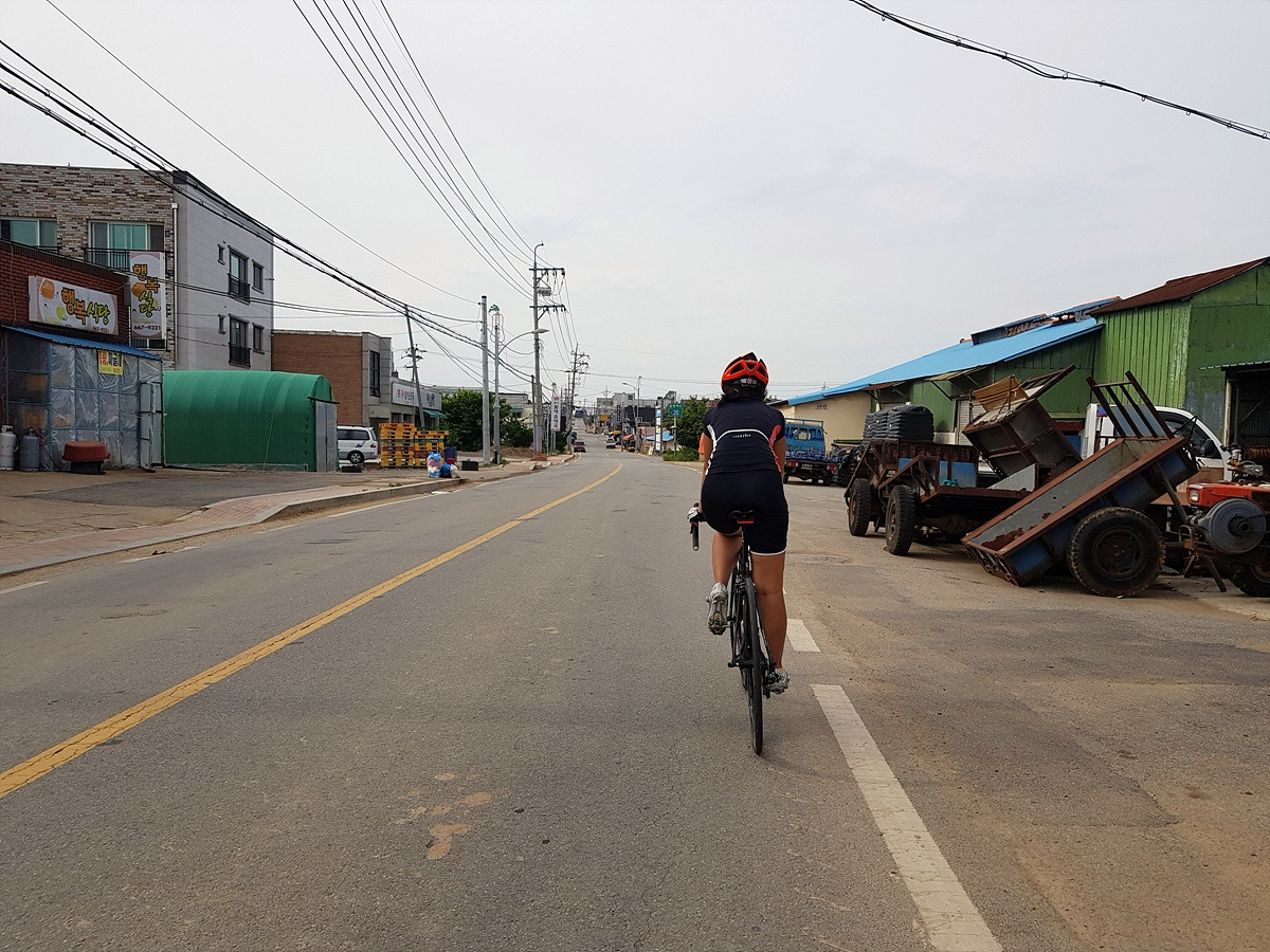 차들이 고속으로 질주하는 도로 옆으로 이렇게 한적한 마을길을 달린다. 완전히 평지는 아니라 조금 힘들 수 있지만 안전한 길이 최고다.