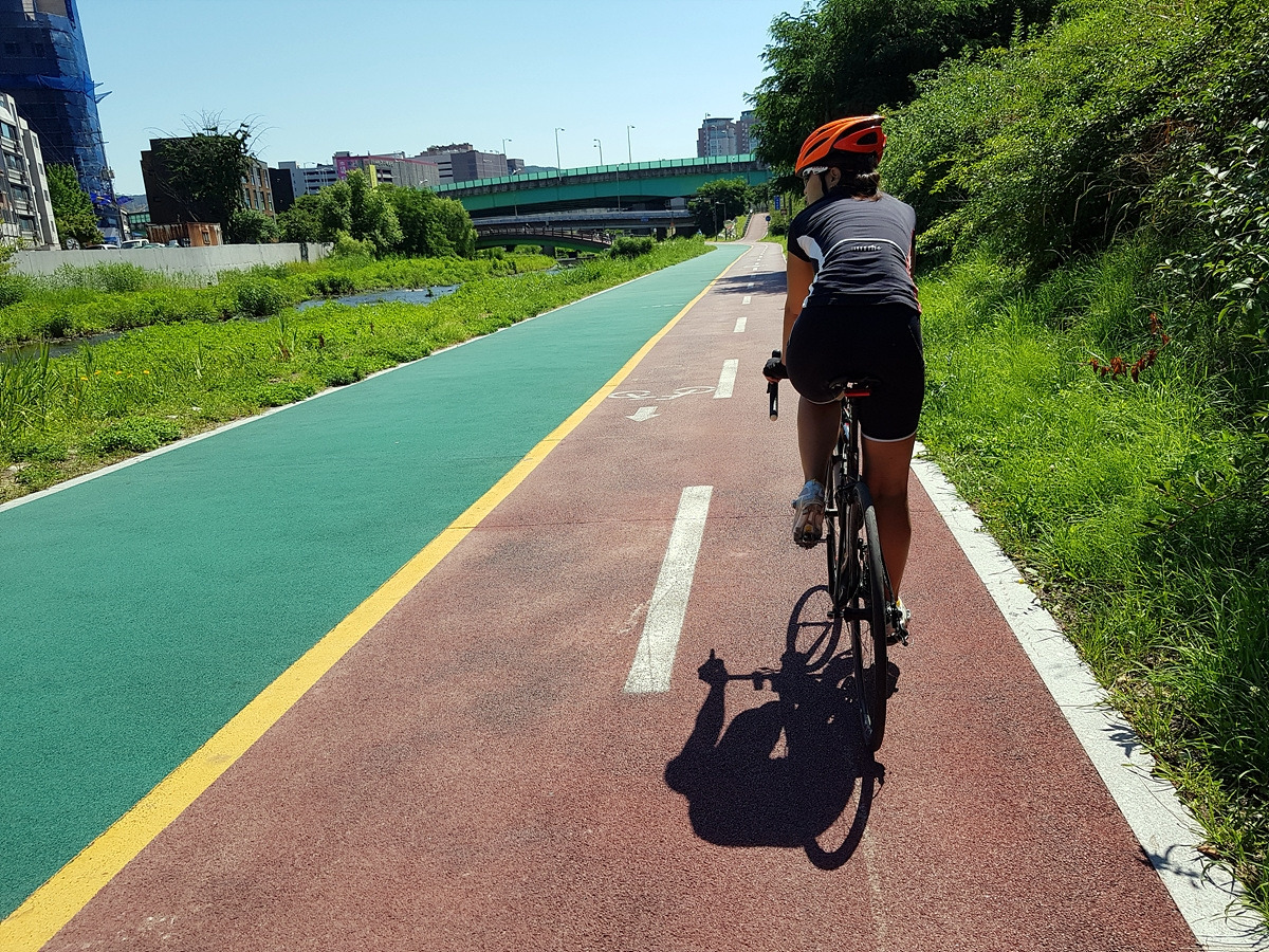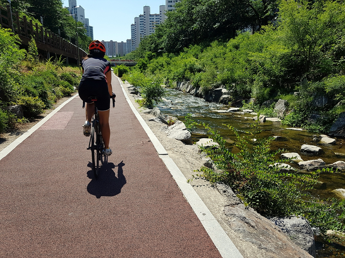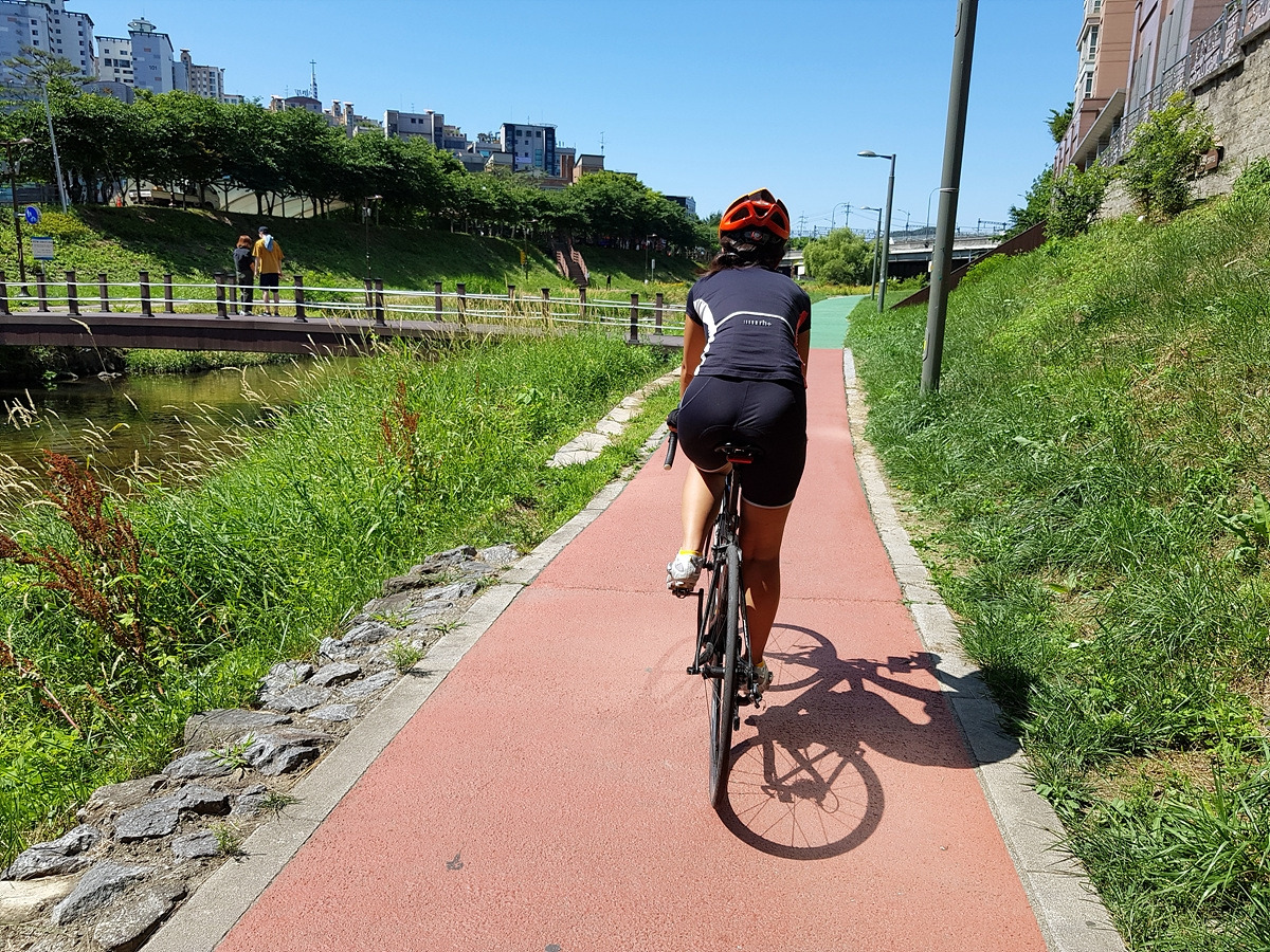 풍덕천 자전거길을 쭉 따라가면 된다. 길이 좁은 편인데 산책객들이 많으니 주의해야 한다.