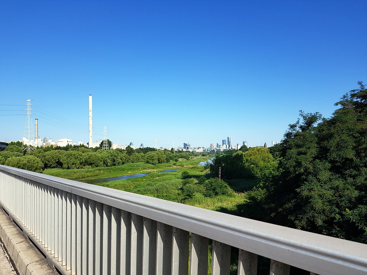 눈 앞에 보이는 다리가 방아교다. 사실 서울 공항이 끝나고 처음 나타나는 다리로 미리 건너면 길 찾기가 쉬운데 조금이라도 더 나무 그늘 아래로 가려고 세 번째 다리로 건넜다.