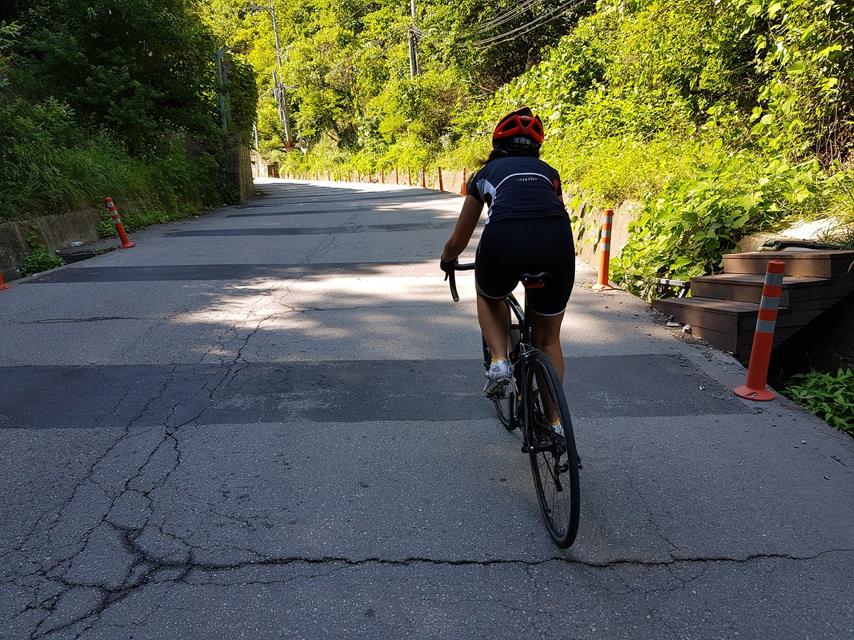고기리 코스의 하이라이트인 말구리 고개다. 초보자들에게는 상당히 힘든 구간이라 할 수 있다. 한강 북단 자전거길 미음 고개보다 두 배 이상 긴 업그레이드판이라 할 수 있다.
