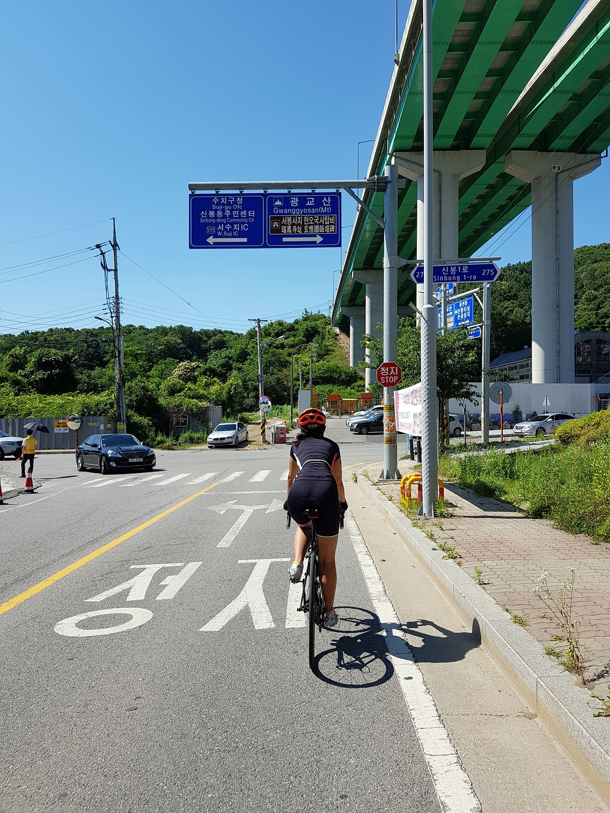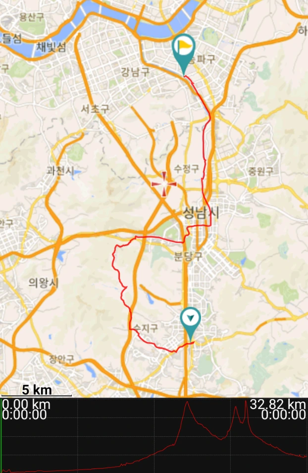 오늘은 거의 서울-용인 고속도로를 따라가는 코스다. 이제 수지구청 쪽으로 좌회전해서 빠져나간다.