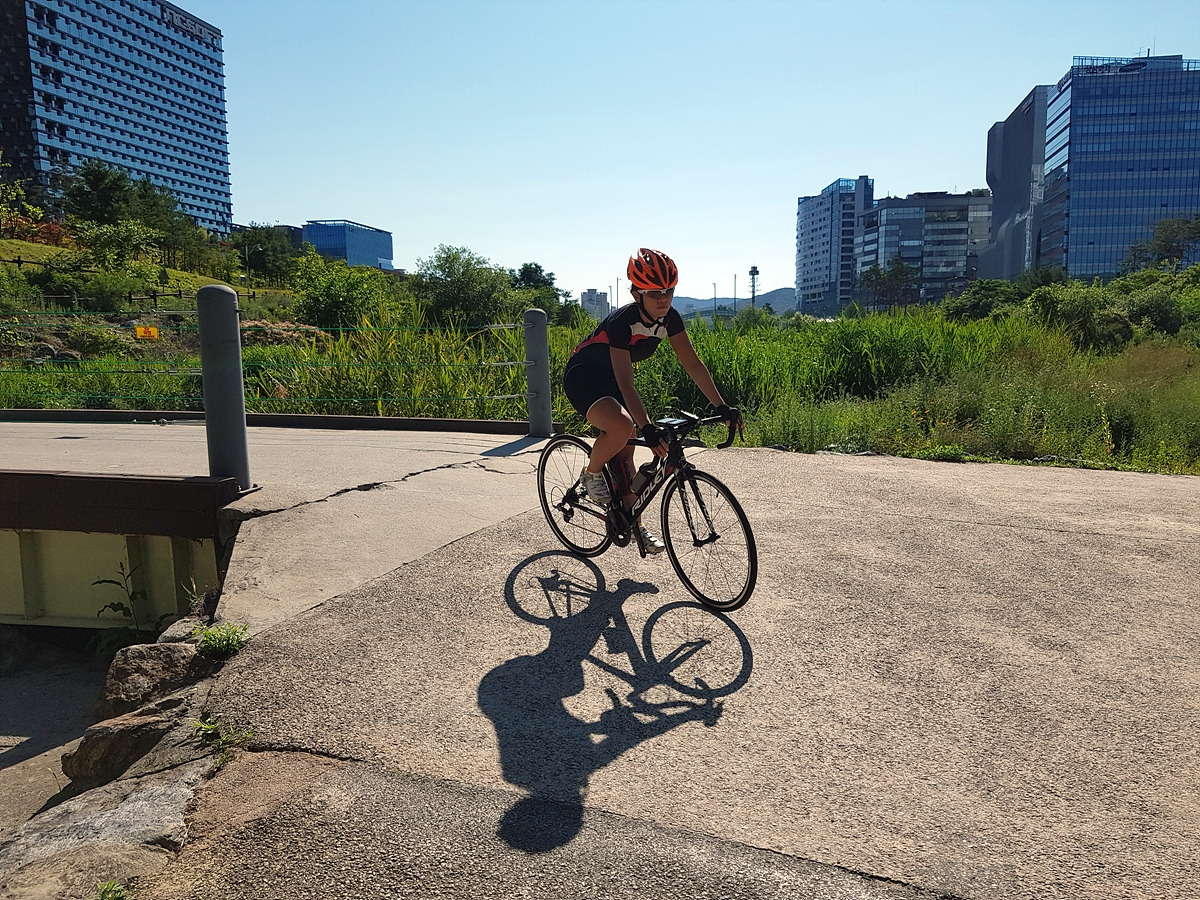 너무 더운 날에는 조금이라도 시원한 아침이나 저녁 운동으로 2~3시간 정도 타는 게 딱 좋은 것 같다. 서울에서 출발해서 간단히 돌고 올만한 코스 중에 분당 사람들이 자주 가는 고기리에 가기로 한다. 탄천 자전거길로 복귀하면 50km를 조금 넘는 거리지만 죽전에서 점심을 먹고 지하철로 복귀하기로 한다.