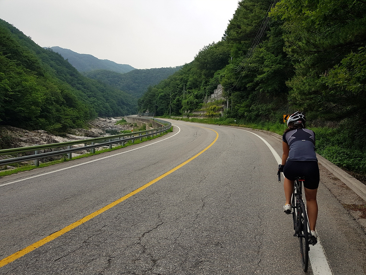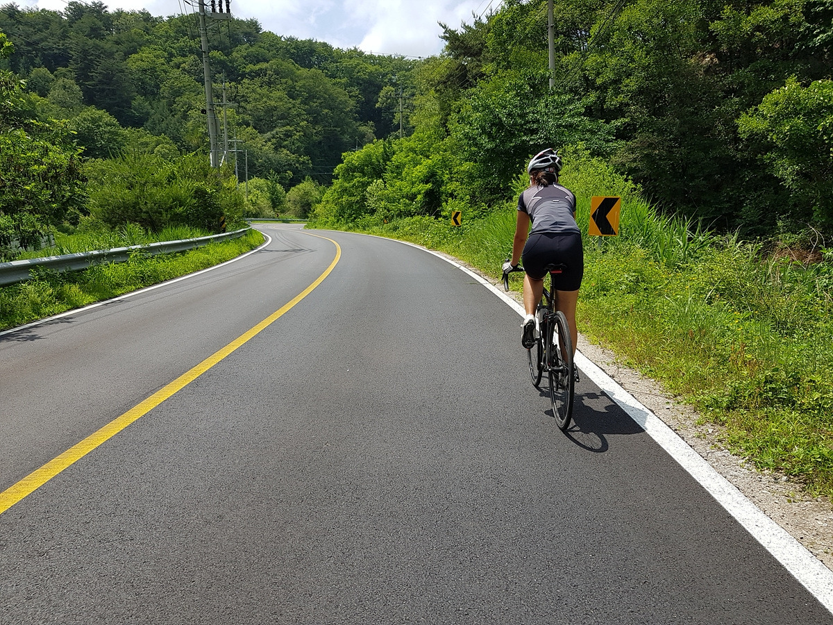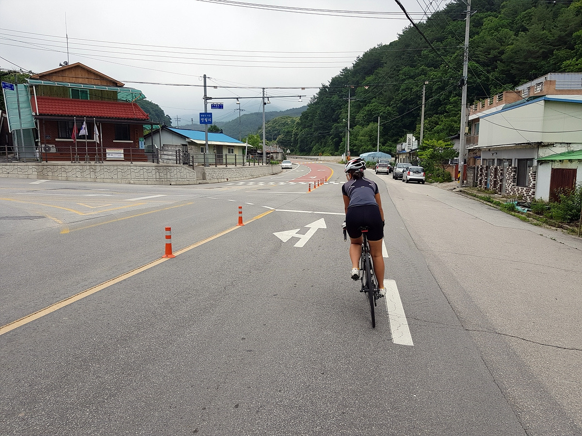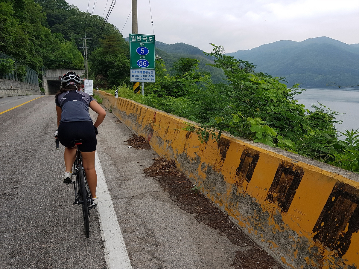 춘천댐 삼거리에서 우회전하면 이제 70번 도로와 5번 국도가 만나게 된다. 이제부터 좁은 길에 차들도 많은 길이라 우리도 차량 통행이 많은 시간대에는 잘 안 다닌다. 지금은 이른 아침이라 차들이 적다.