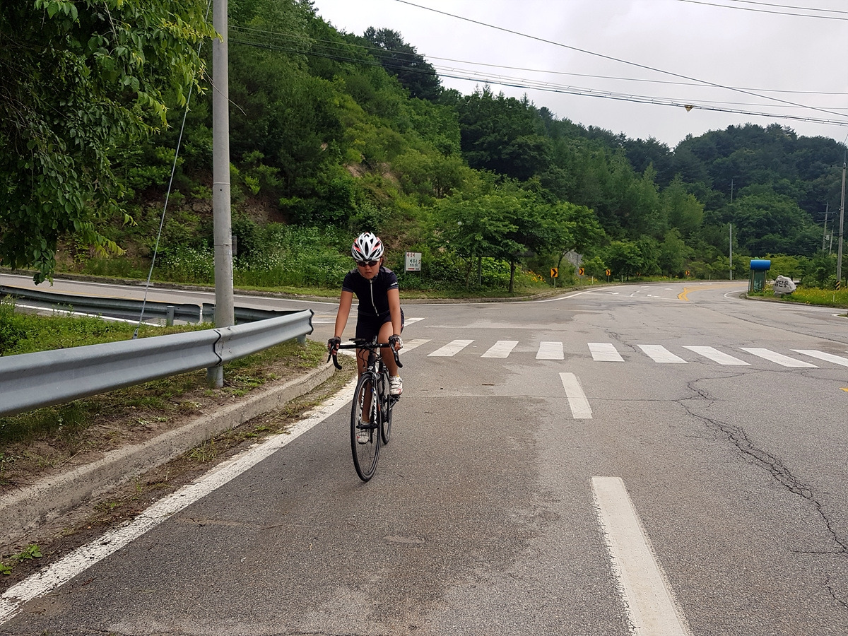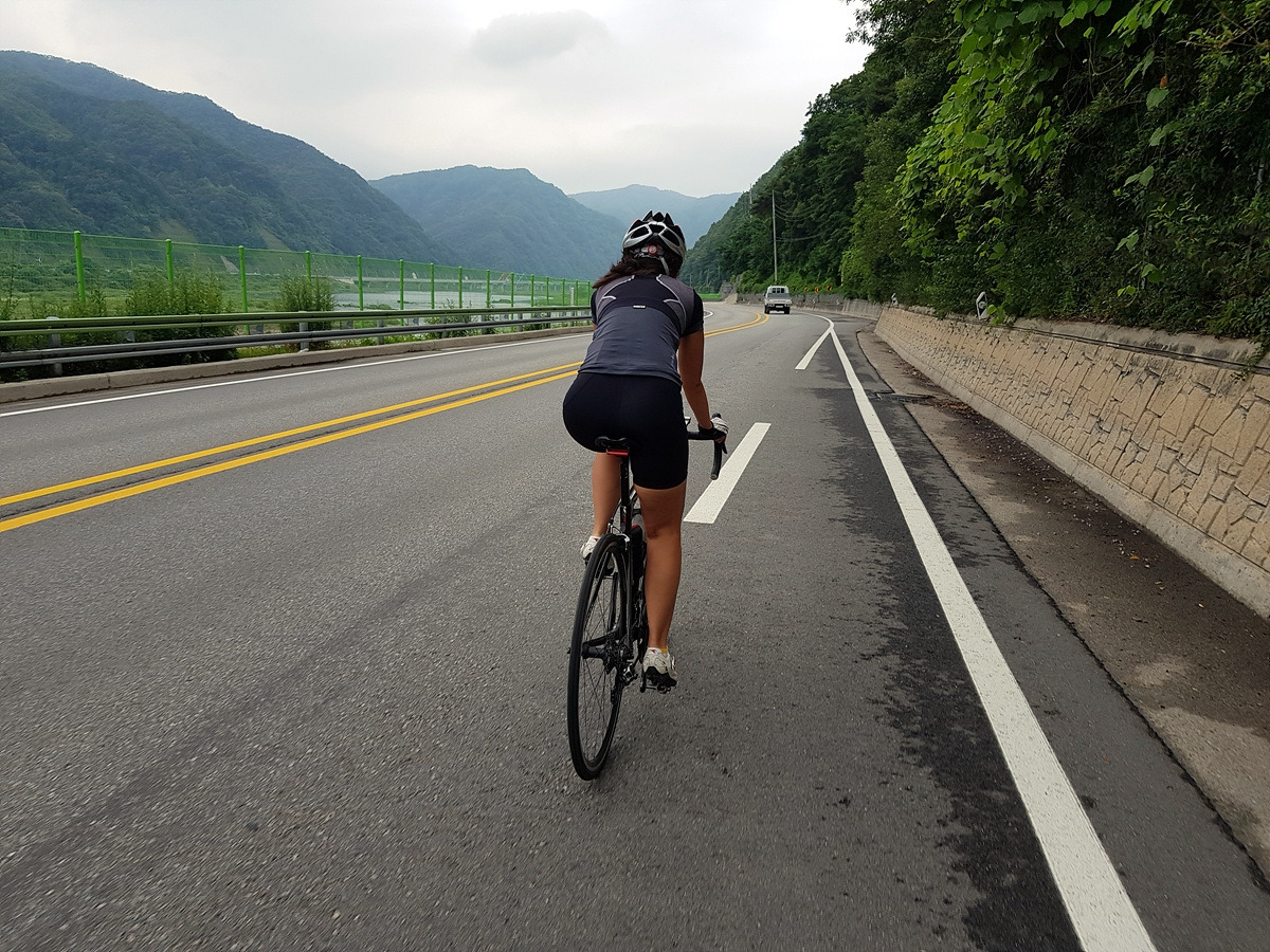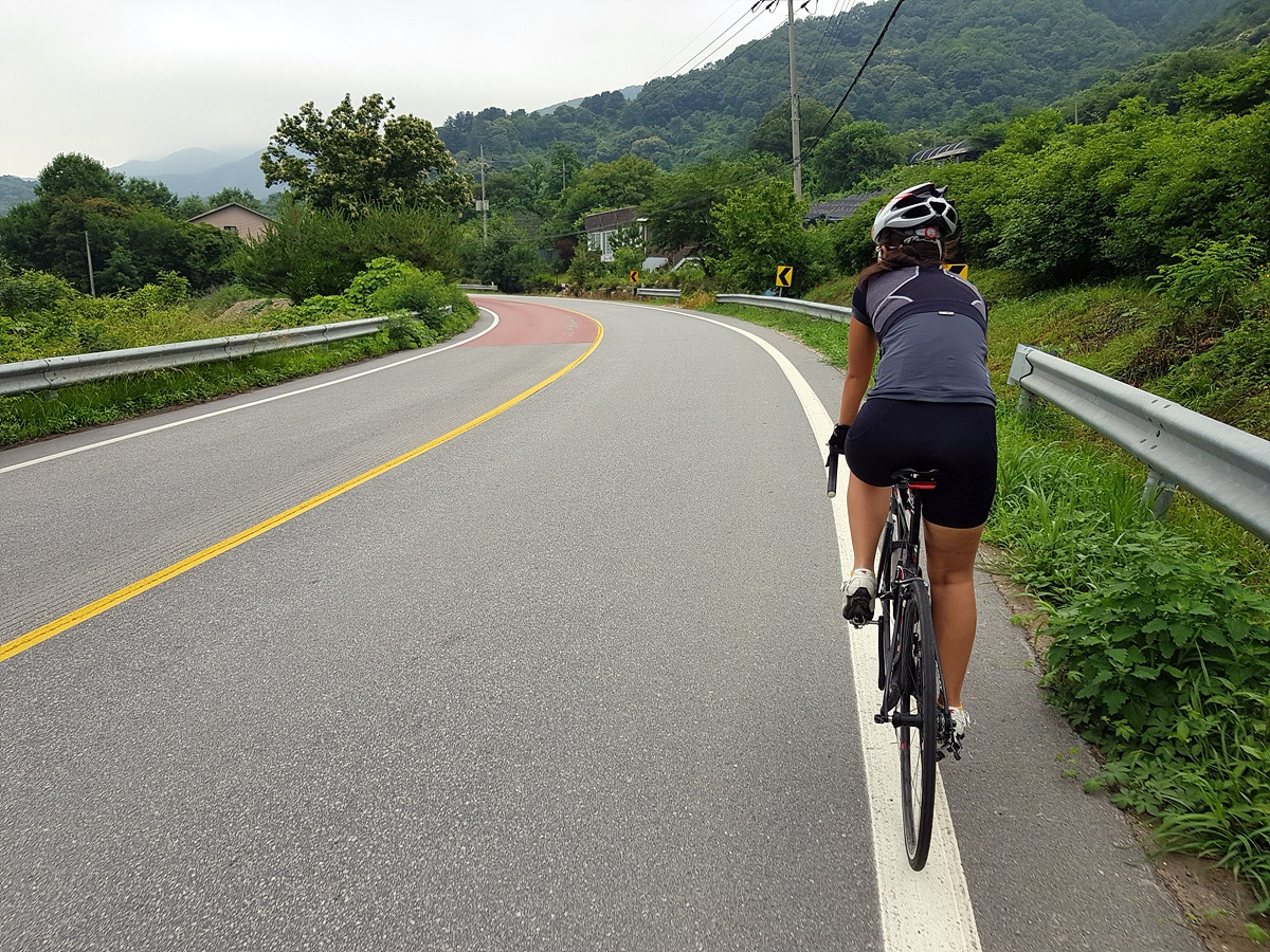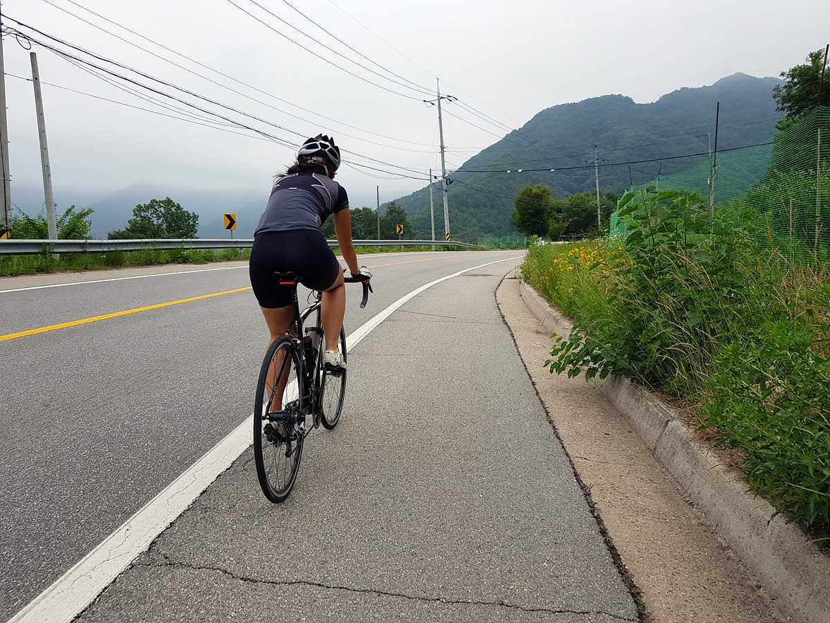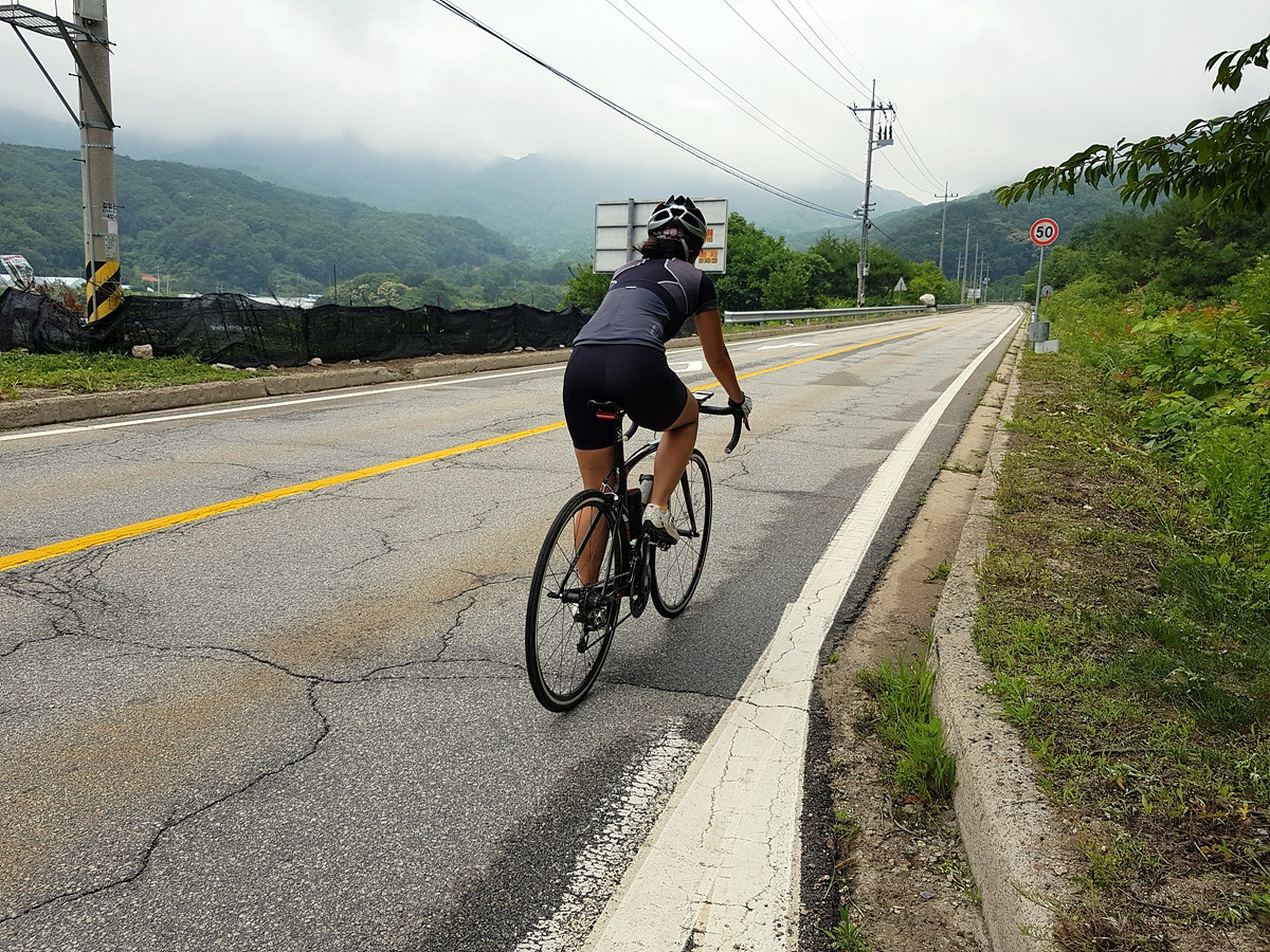 곡운구곡 계곡을 따라 달리는 코스인데 오늘은 날이 흐려 시원하기까지 하니 좋다.
