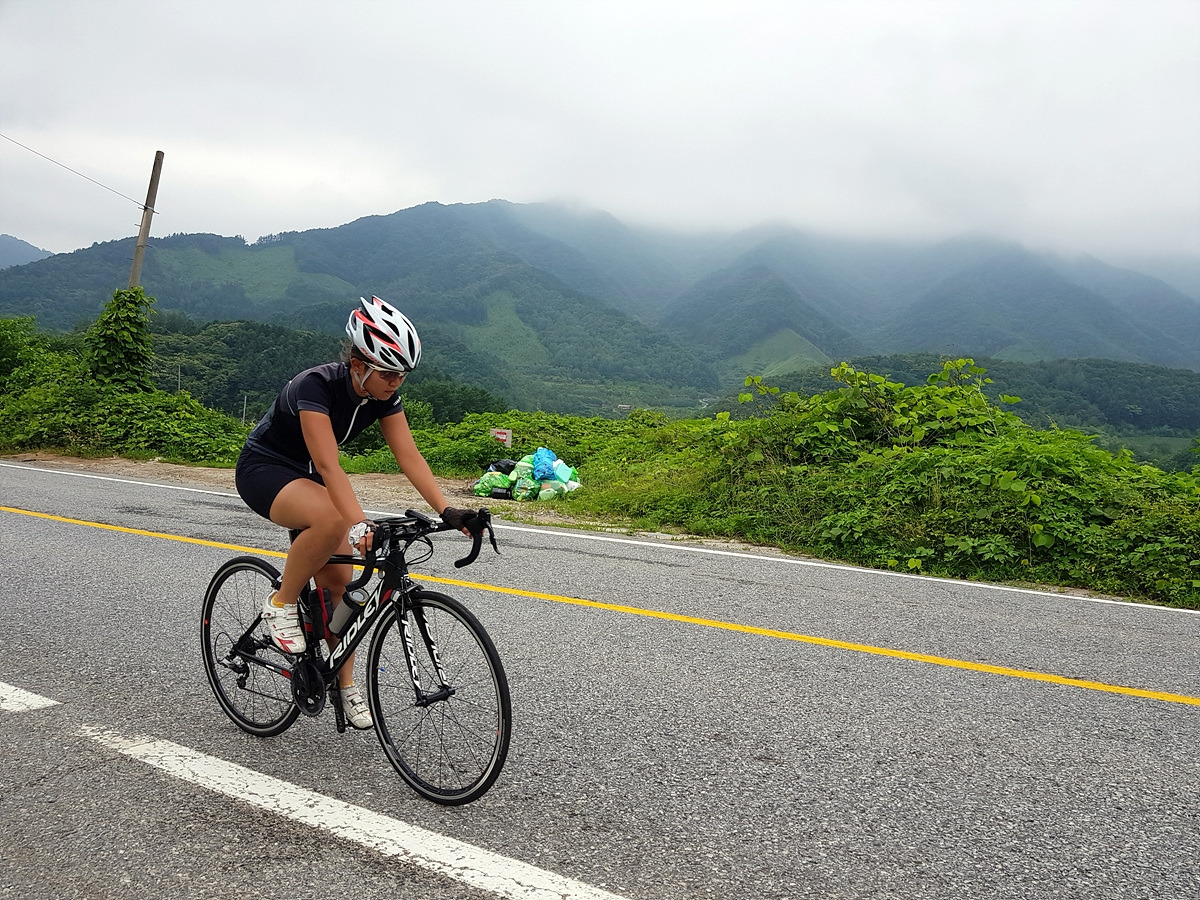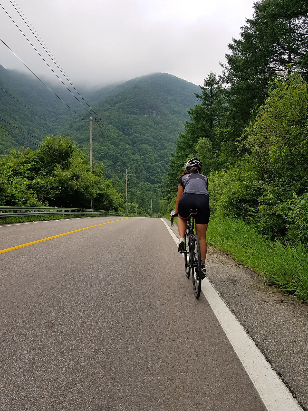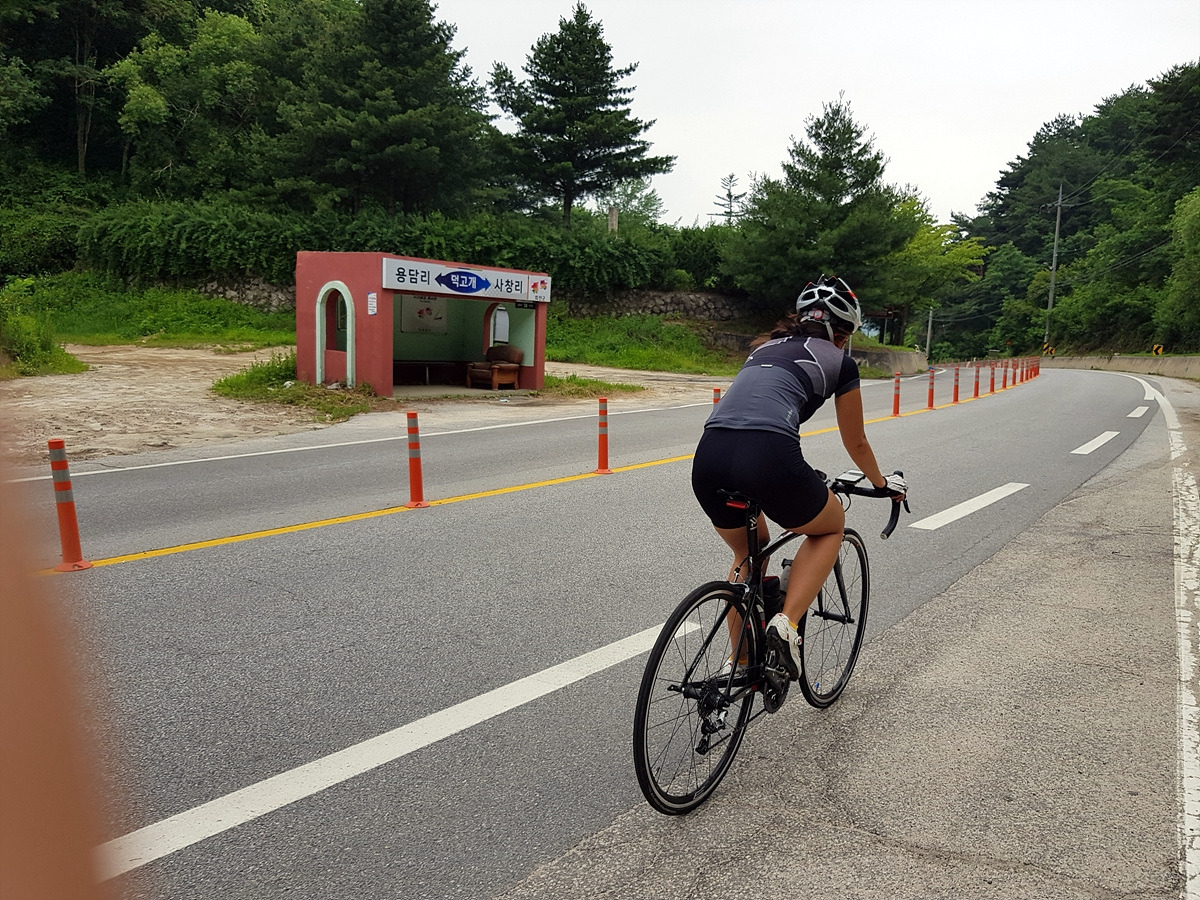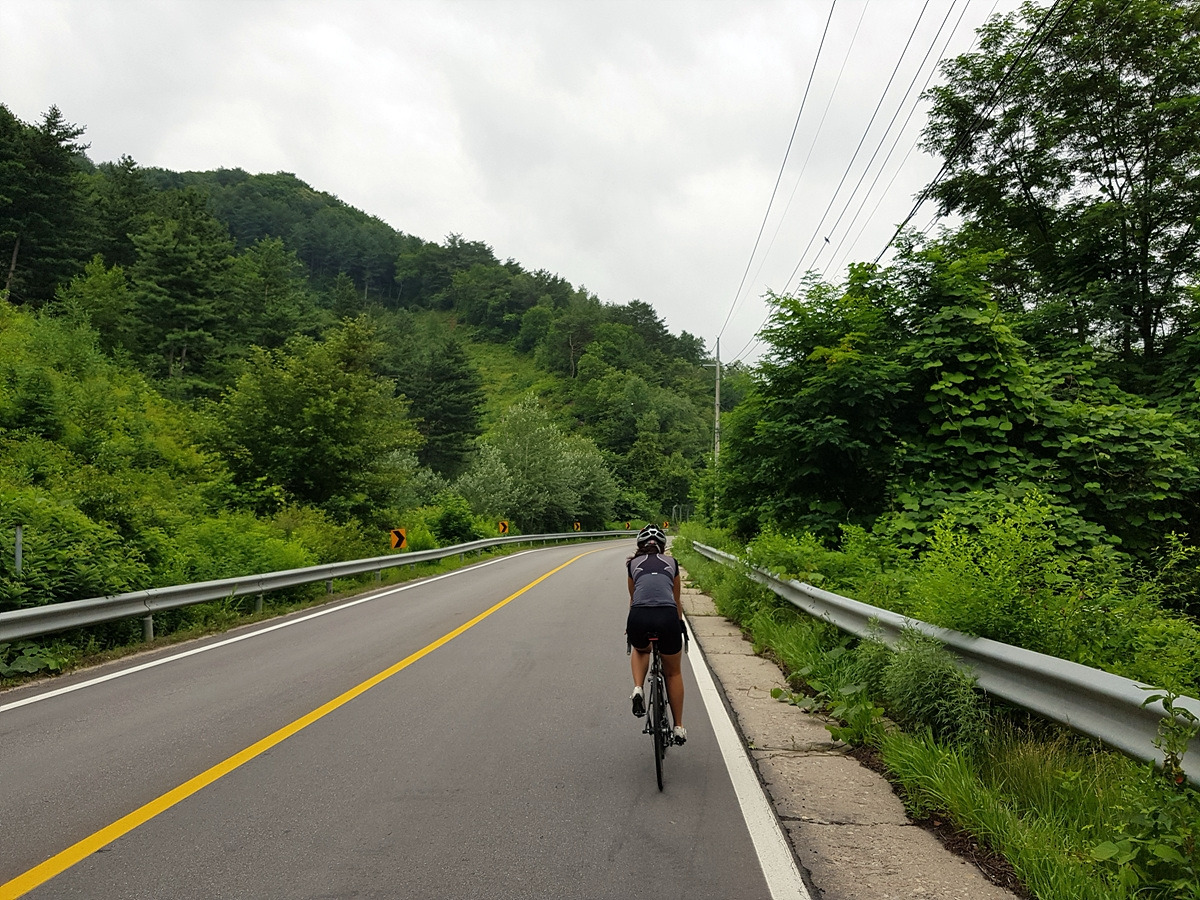 곡운구곡 계곡을 따라 달리는 코스인데 오늘은 날이 흐려 시원하기까지 하니 좋다.