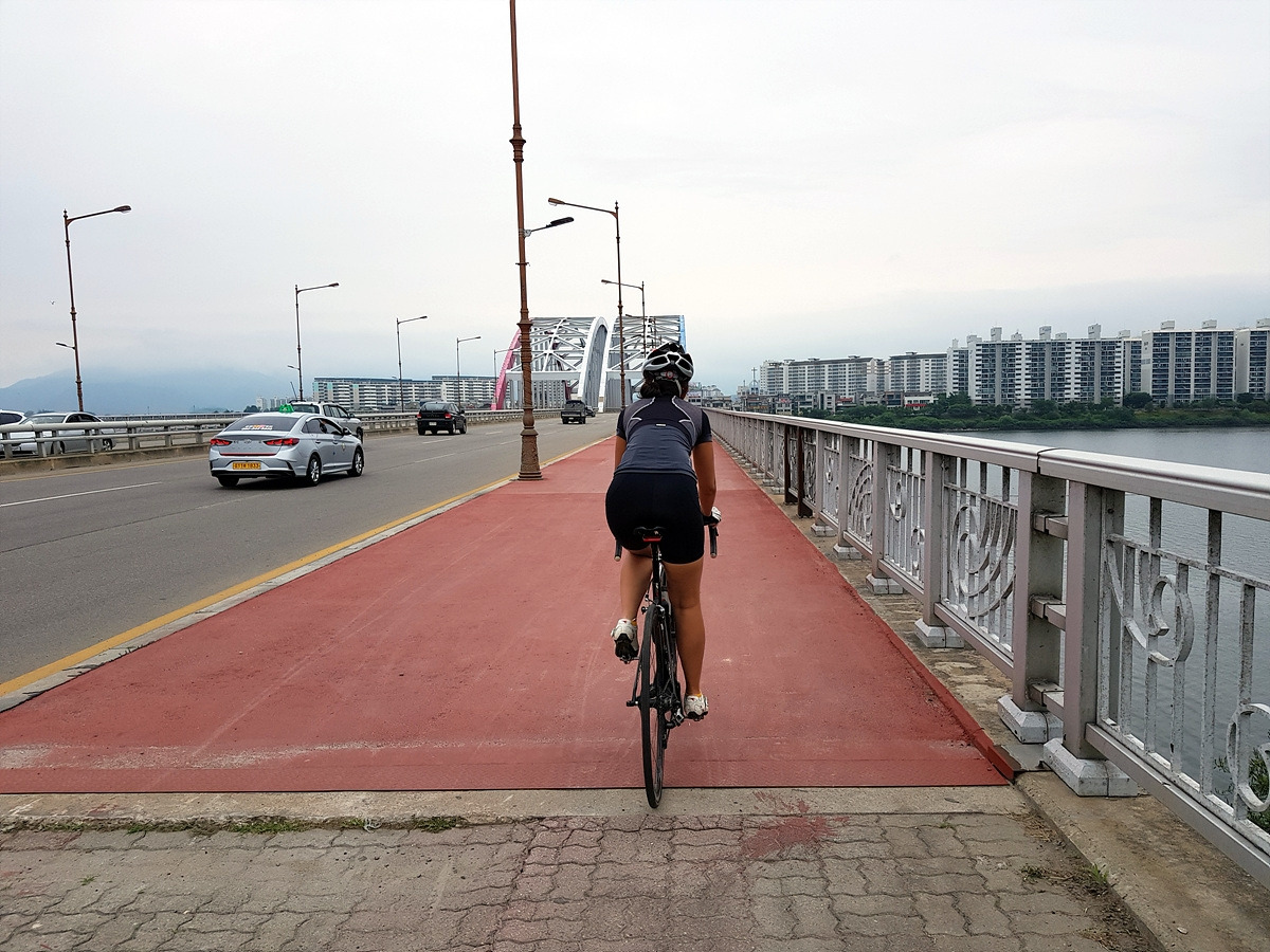 처음에는 춘천에 자전거 타러 온 사람들은 대부분 한 번은 지나갔을 소양 2교를 건너서 춘천댐까지 달리면 된다. 당분간은 5번 국도를 따라가게 된다.