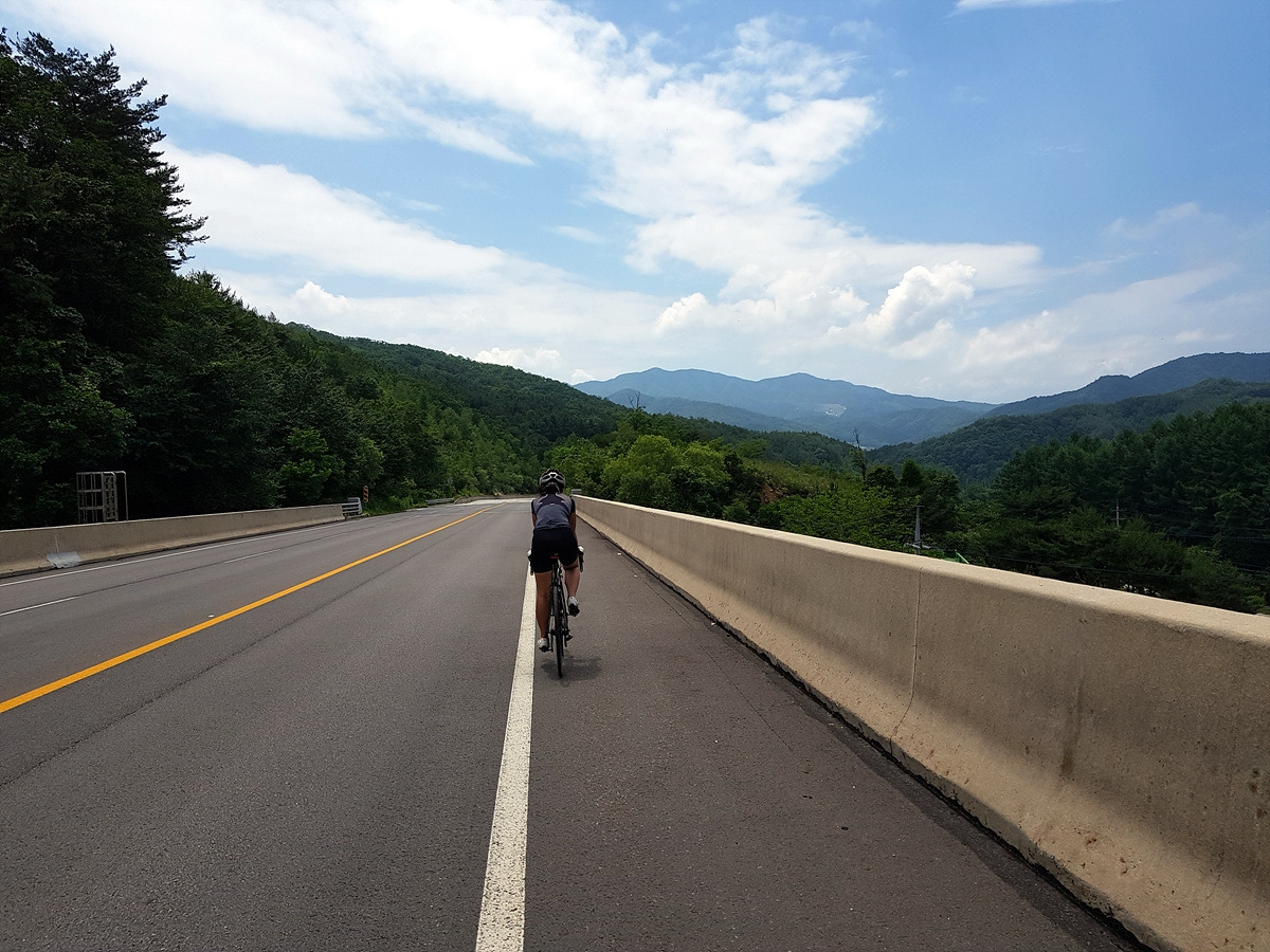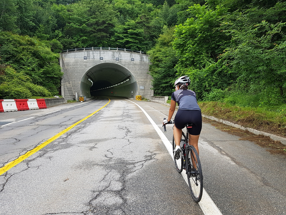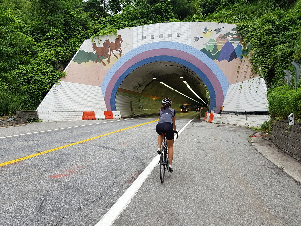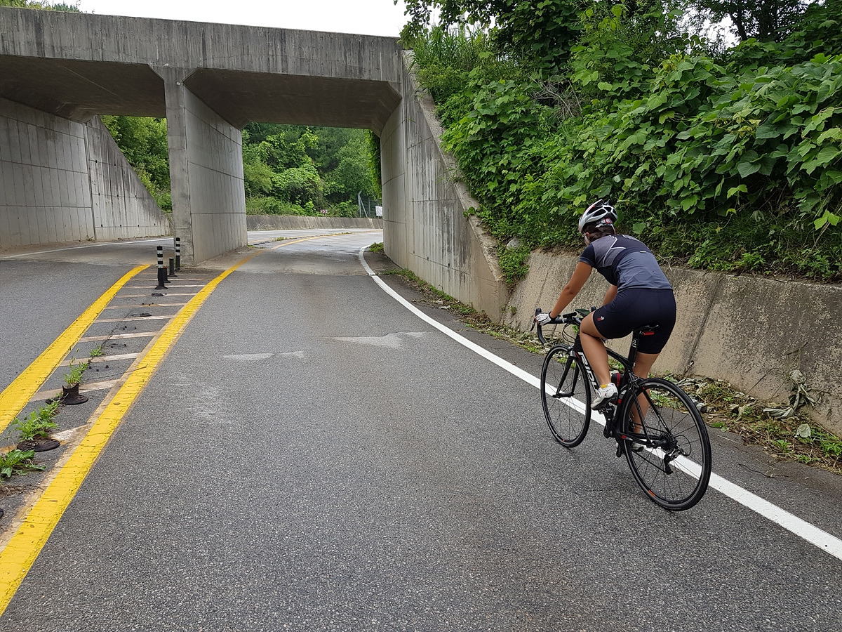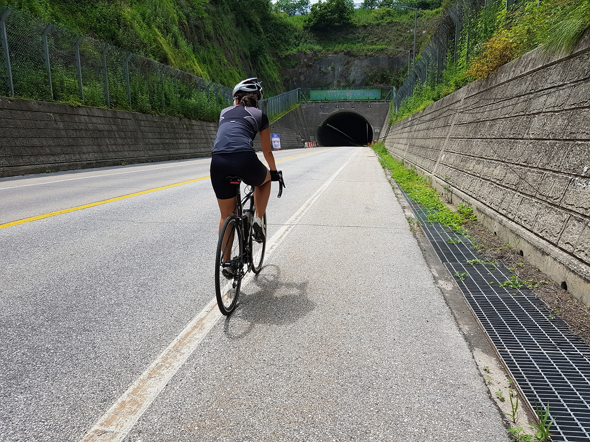 피암터널을 몇 번 지나야 한다. 터널에서는 차선이 좁아지니 차량 통행에 주의해서 달린다. 이 5번 국도보다 강 건너의 70번 도로가 더 큰 도로라 대부분의 차들은 70번 도로로 간다. 자전거들은 보통 여기로 간다.