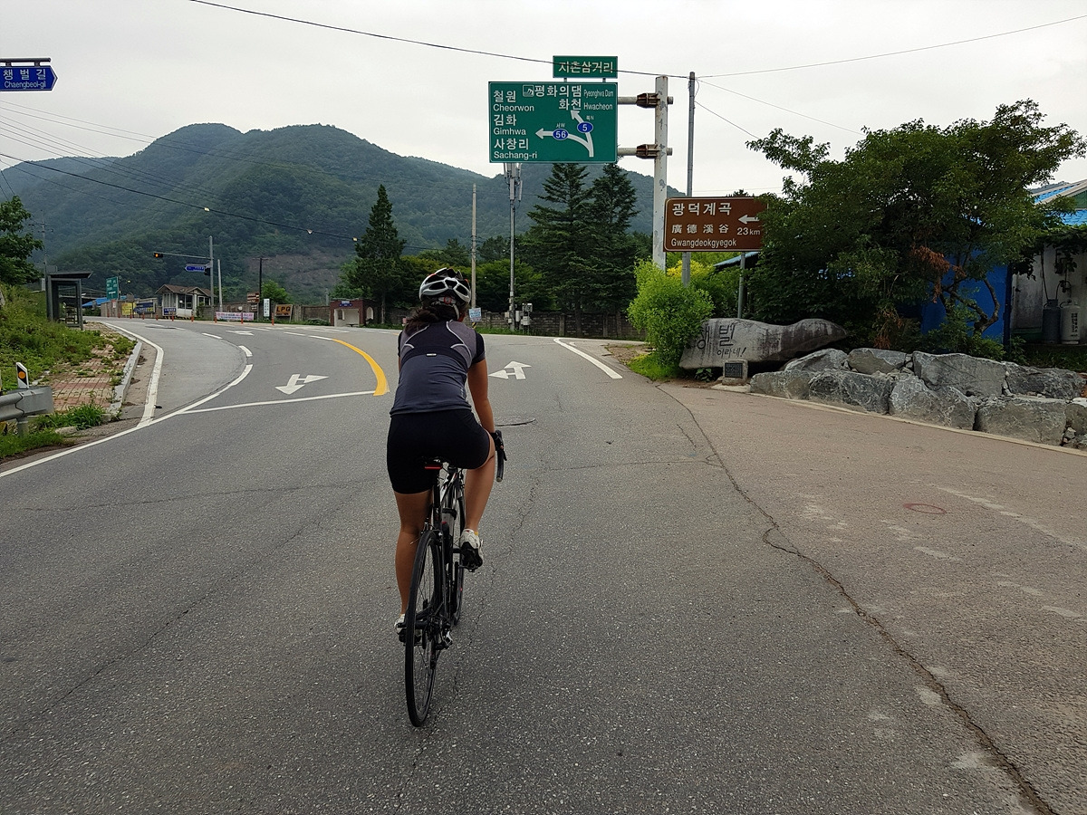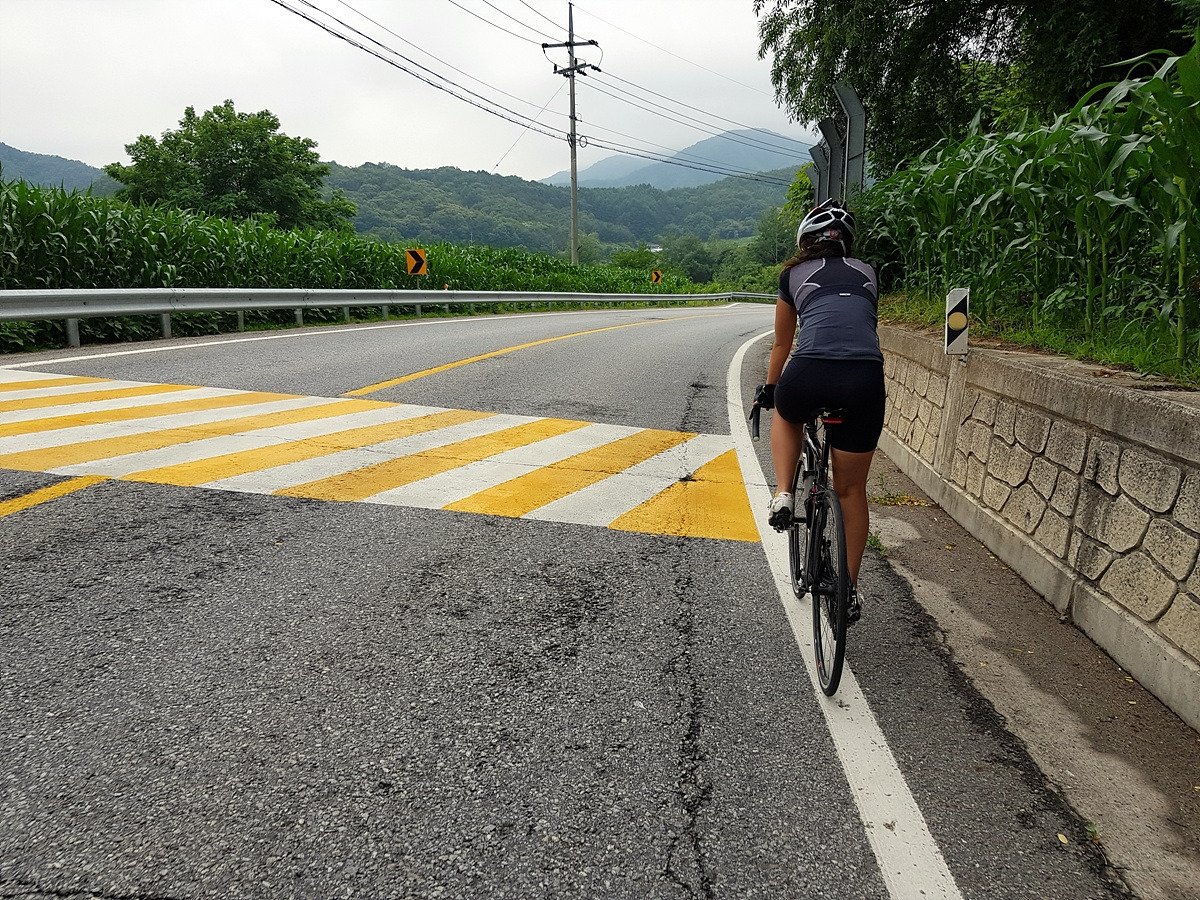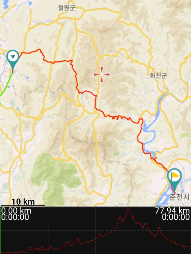 지난번에는 서울에서 철원까지 100km를 달렸다. 이번에는 춘천에서부터 시작해본다. 춘천에서 철원까지 가려면 어떤 식으로든 큰 고개를 하나 이상 넘어야 한다. 광덕 고개를 넘어갈까 하다가 좀더 차 없는 길로 갈 수 있는 하오재를 넘기로 한다.
