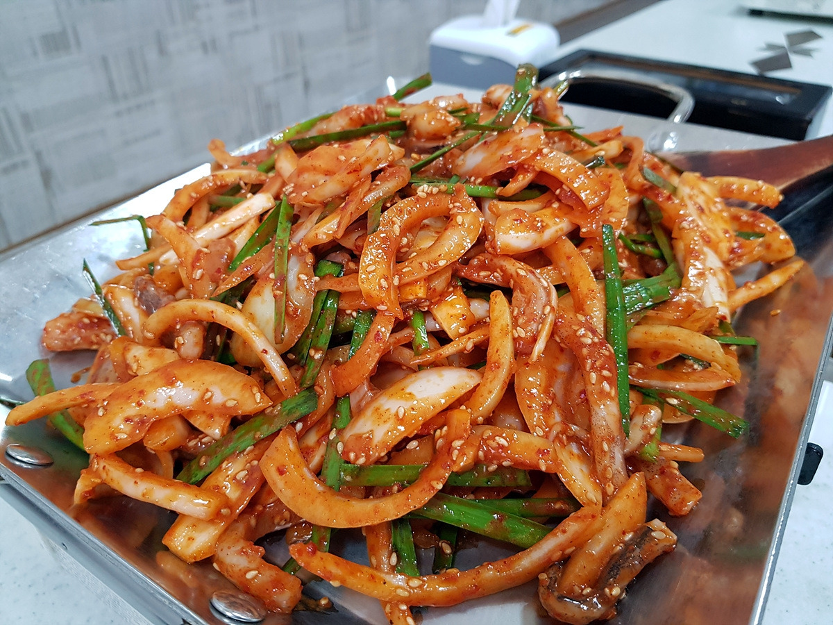 지난번에 문을 닫아서 못 갔던 식당에 가서 오징어불고기를 먹는다. 1인분 8000원에 푸짐하게 나온다. 맛도 좋다.