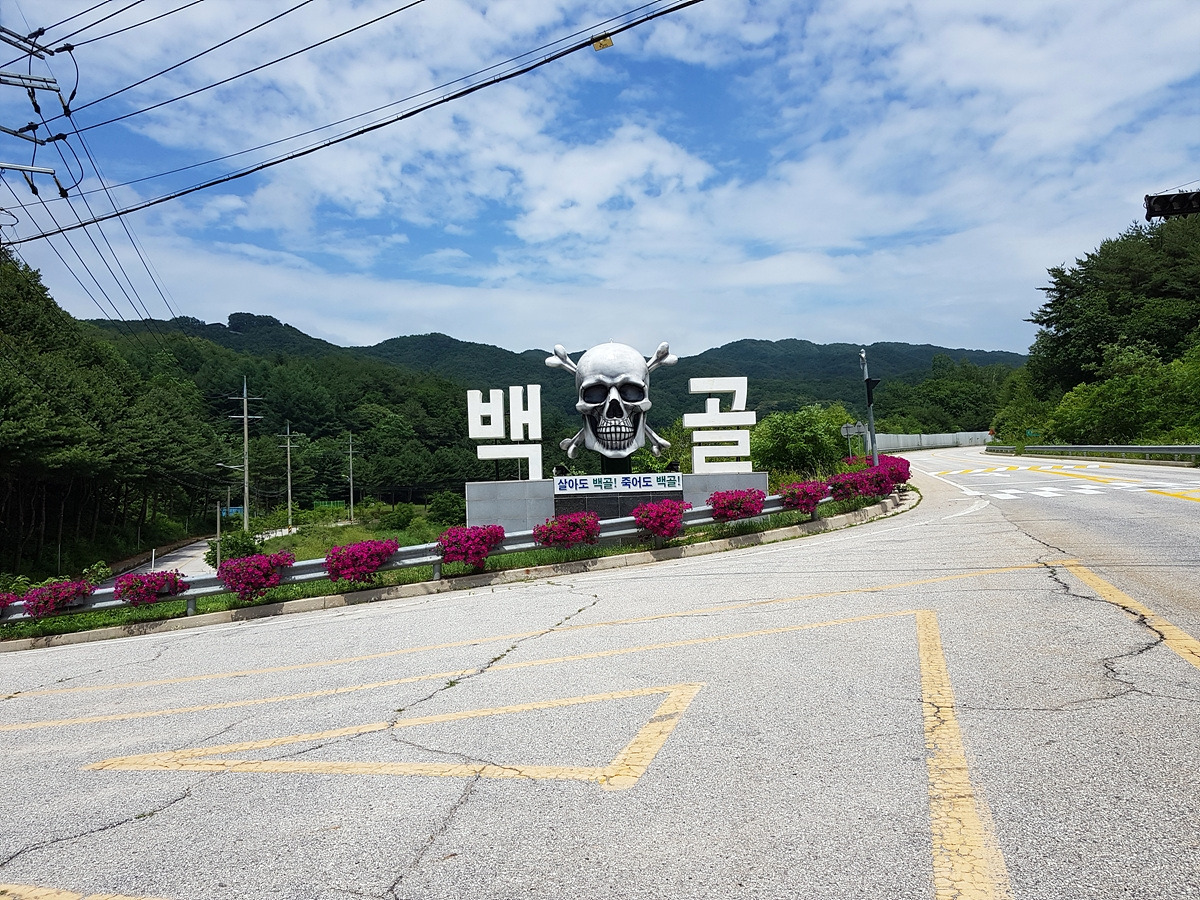 철원에는 육군 3사단인 백골부대가 있다. 철원 여기저기에 백골 마크가 보이는데 그중에서 제일 멋진 백골 마크가 여기에 있다. 죽어서 백골이 되어서라도 고향땅을 되찾겠다는 말이 부대 명칭의 유래라고 한다.