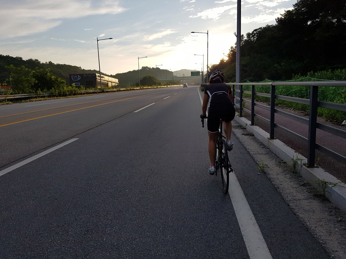 외지인은 익숙하지 않지만 명동 닭갈비 골목 뒤 언덕을 넘어가면 운교 사거리와 팔호광장 오거리가 이어진다. 이 팔호광장에서 출발한다. 지금은 아침 6시인데 기온은 25도 정도라 자전거 타기에 딱 좋다.
