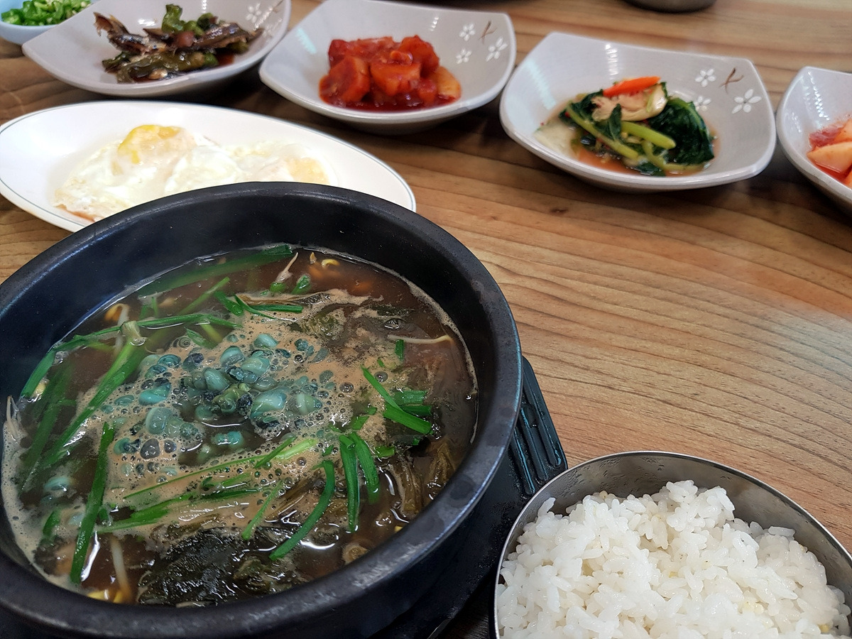 더워지기 전에 후딱 운동하러 가느라 아침은 운동 후에 먹기로 했다. 돌아가는 길에 종종 가는 다슬기 해장국집에 들러 아침을 먹는다. 춘천에 있는 다슬기 해장국집 중에 여기가 제일 마음에 든다.