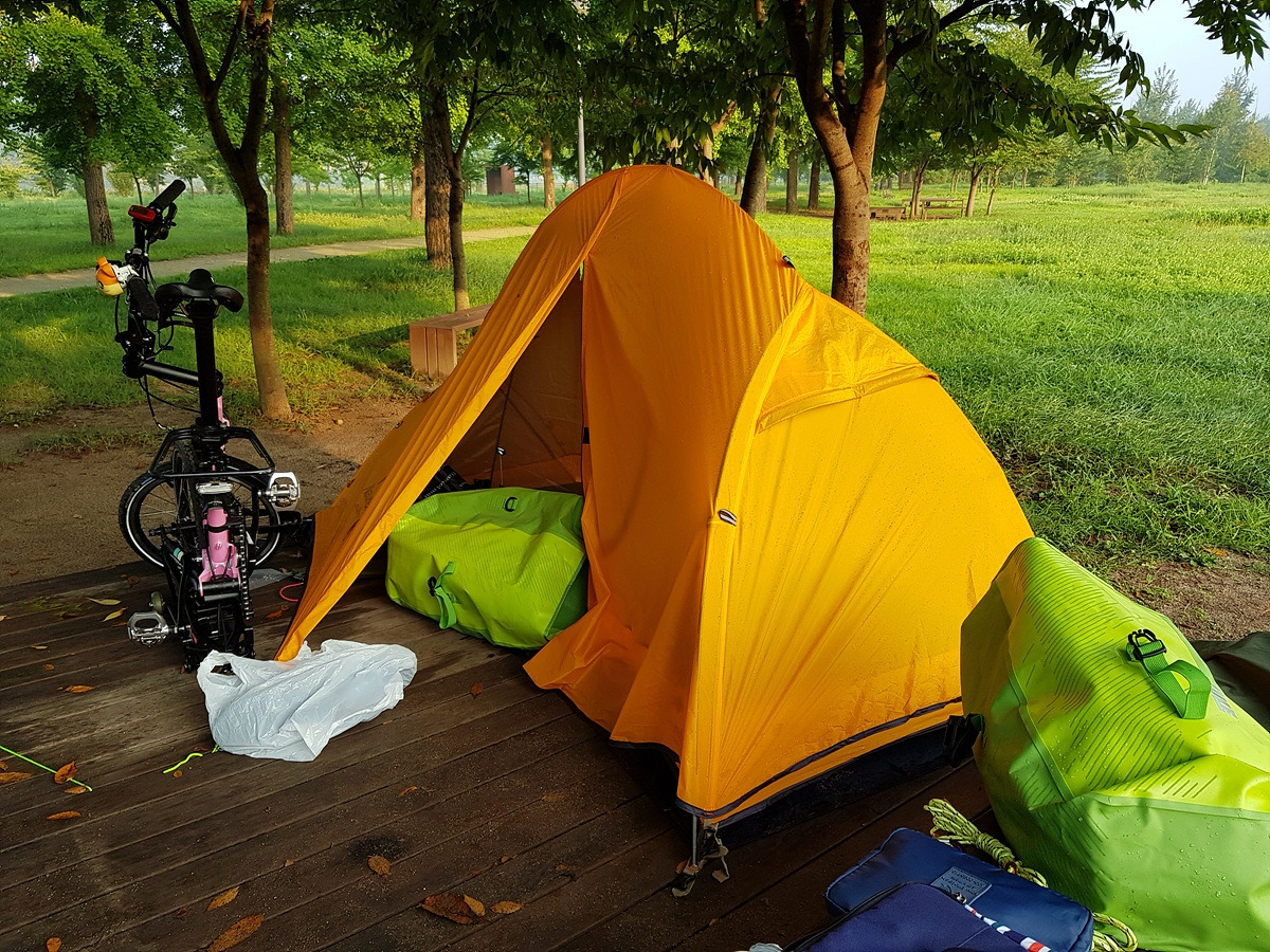 자전거 캠핑 이야기 1 - 준비물 자전거 캠핑은 가벼워야 한다. | 지니님과 함께 하는 자전거 여행에서는 절대 캠핑을 하지 않는데 나 혼자 다닐 때는 종종 자전거 캠핑을 하게 되었다. 하지만, 자전거를 힘들게 타고 저녁에 숙박을 해결하기 위해 캠핑을 하는 것이 아니라 캠핑을 즐기기 위해 캠핑 장소까지 자전거로 이동하는 것뿐이다. 이것이 순수한 자전거 캠핑이라 할 수 있다. 요즘 캠핑은 캠핑카나 캠핑 카라반을 이용해서 더