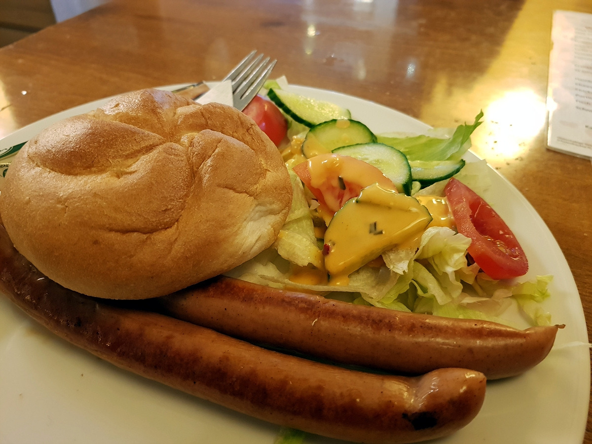 여기 특산 소시지는 딱히 특별하진 않지만 따듯한 소시지에 빵과 샐러드를 곁들여 나오니 굴라쉬 수프와 어울리는 한 끼 식사가 되었다.