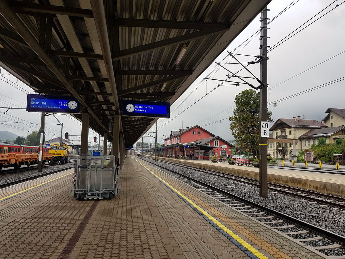 역 대합실에서 자전거 여행하는 유럽 아저씨와 인사하고 무언가 이야기를 나누었는데 컨디션도 안 좋고 자전거 요금을 해결하느라 경황이 없어서 기억이 잘 안 난다. 아저씨는 첼암제까지 간다는 것 같았다. Sankt Johann에 숙소를 예약해놓지 않았다면 나도 첼암제로 가는 게 나았으려나...