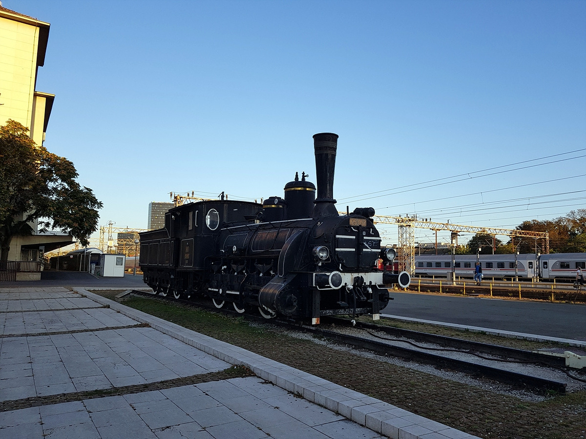 지하상가를 따라 역을 건너왔다. Glavni Kolodvor 역의 건물이 보이고 트램과 택시와 차들로 혼잡하다. 이 역에도 오래된 증기기관차가 전시되어 있다. 아무래도 큰 역인 만큼 좀 좋은 차량을 전시했다.