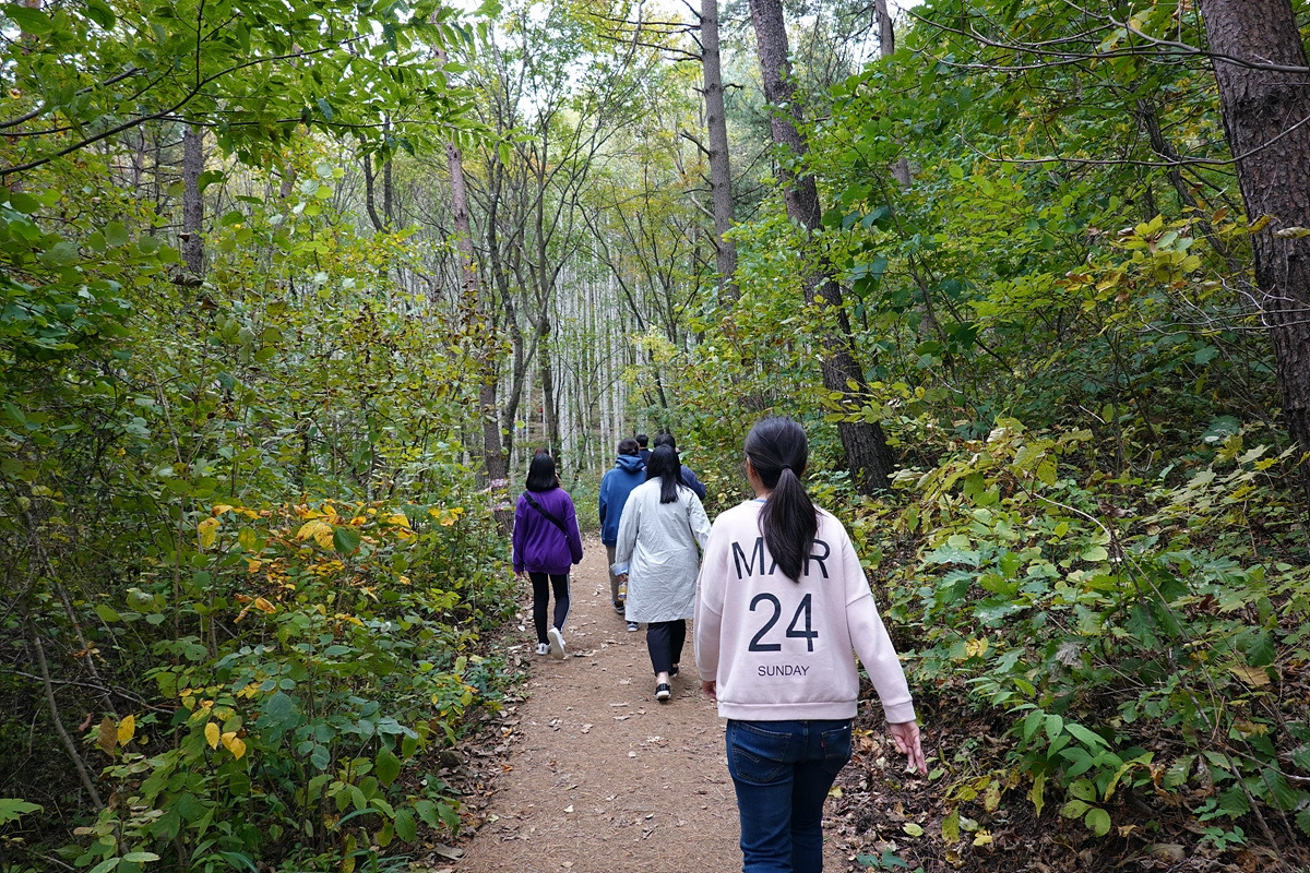 임도를 따라서 자작나무 숲 입구까지 약 3.2km 정도를 걸어야 하니 자주 걷지 않는 사람에겐 짧지 않게 느껴지는 길이다. 그래도 깨끗한 길이라 중무장한 등산객보다는 가벼운 차림의 산책객들이 많다.