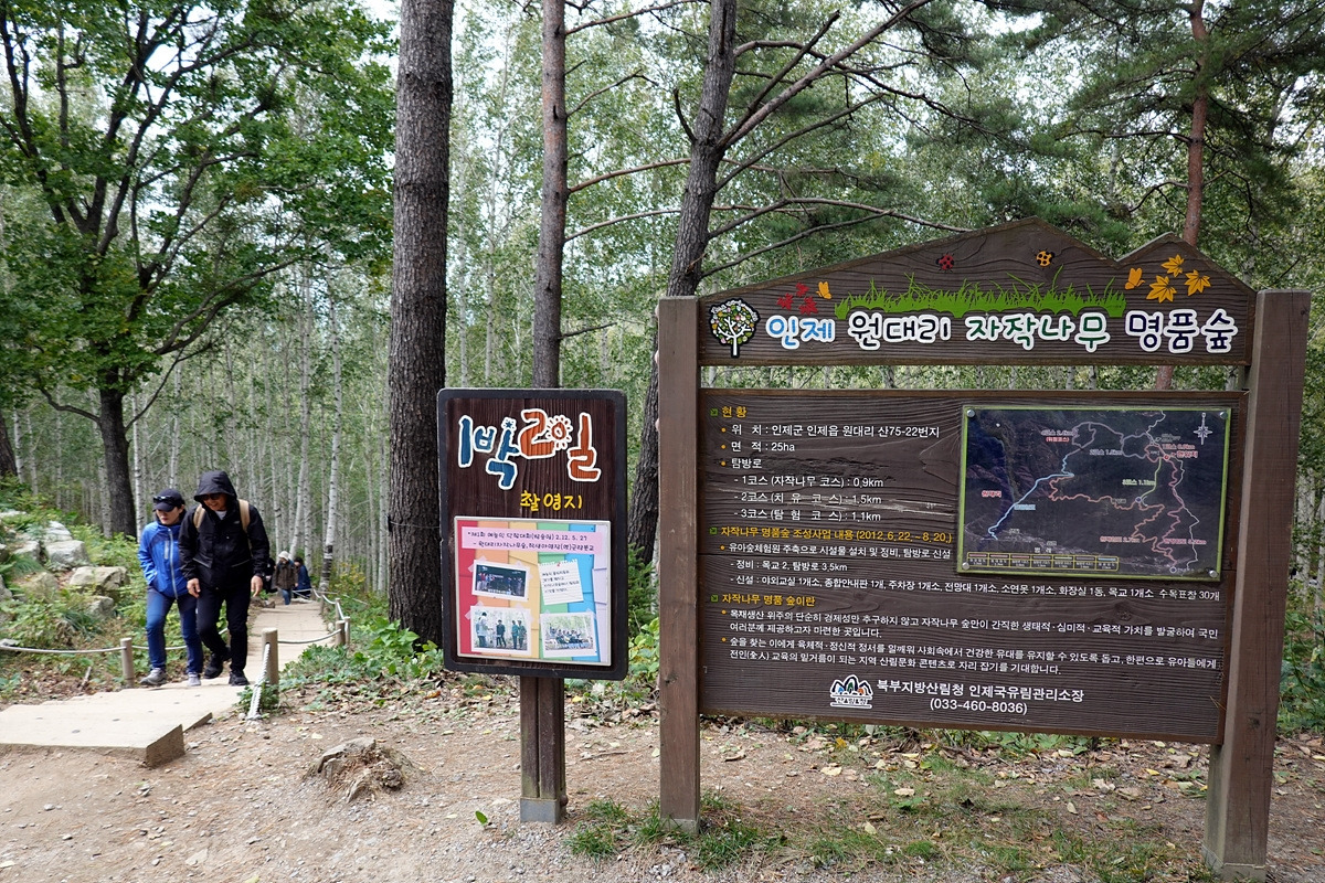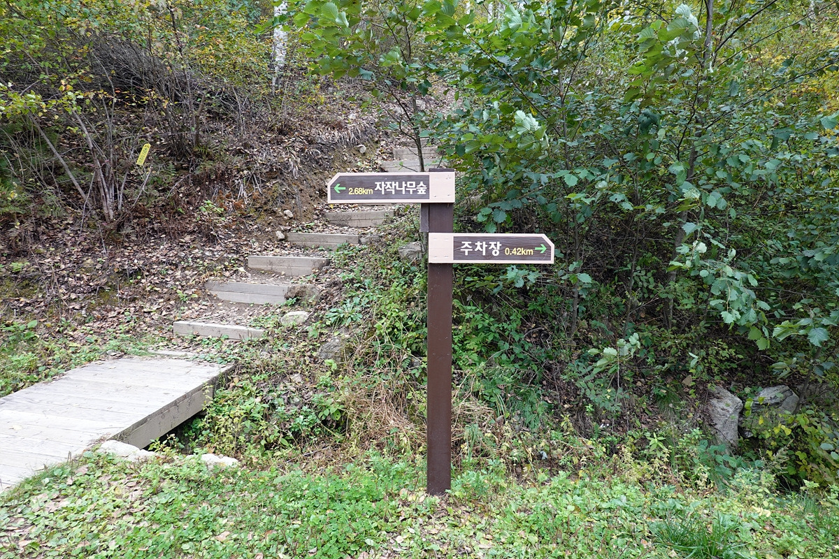 10월 중순이 되었다. 아직 자전거 시즌 오프 할 때는 아니지만 가을을 느껴보고자 가볍게 걷고 싶다. 어디를 갈까 하는데 아직 단풍이 질 시기는 아니니 단풍 구경은 다음에 하기로 하고 아는 사람은 다 알만한 인제 원대리의 자작나무 숲에 다녀왔다. 다른 사람들도 우리와 비슷한 생각인지 자작나무 숲 입구 주차장은 이미 만차다. 근처 도로변도 모두 주차한 차들로 꽉 차있다. 조금 헤매긴 했지만 운 좋게 빈자리에 간신히 주차를 하고 자작나무 숲으로 출발한다.