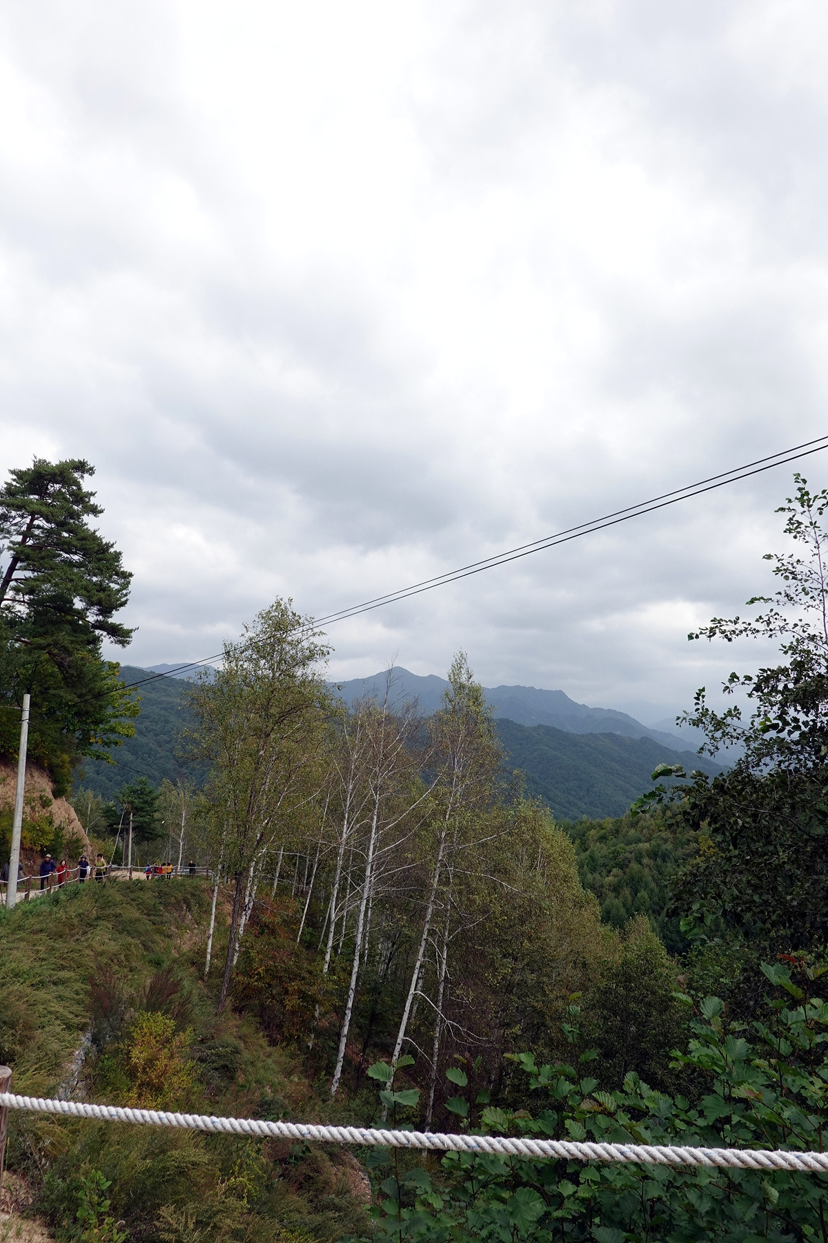 아직 초가을이라 푸릇한 산속에 하얀 선들이 수직으로 뻗어나가는 광경이 비현실적이기까지 하다.