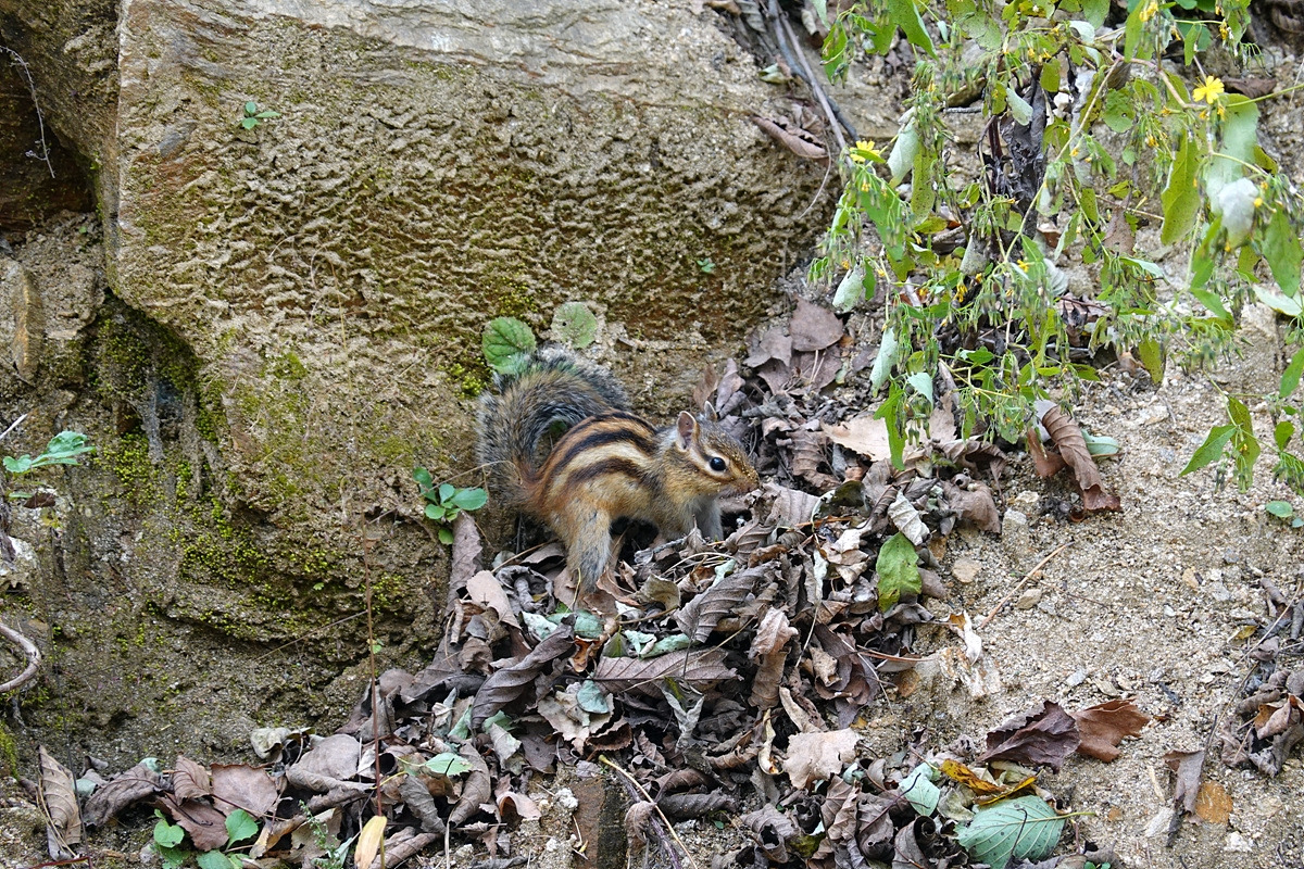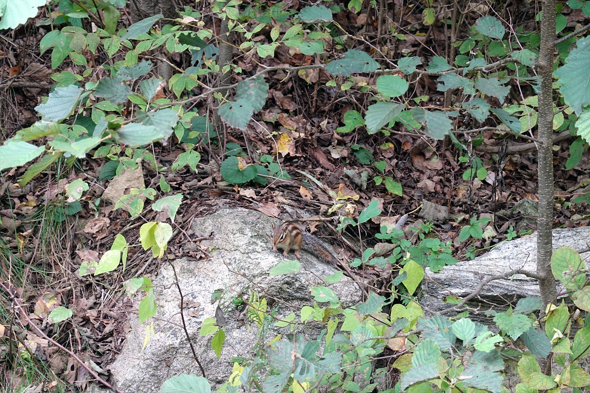 등산객들을 대상으로 도토리나 나무 열매 등을 가져가지 말라고 한 캠페인이 효과가 있는 것인지 요즘 강원도 쪽의 산에 가면 다람쥐들을 어렵지 않게 볼 수 있다. 여기 자작나무 숲도 마찬가지다. 경계심이 강한 동물인데도 사람들에게 익숙한 것인지 가까이 다가가지 않으면 잘 도망가지도 않는다. 앞서 가던 아주머니들은 꽃뱀을 마주쳤나본데 뱀은 우리가 갔을 때는 이미 어디론가 사라졌다. 가을 산에서는 항상 뱀조심이다.