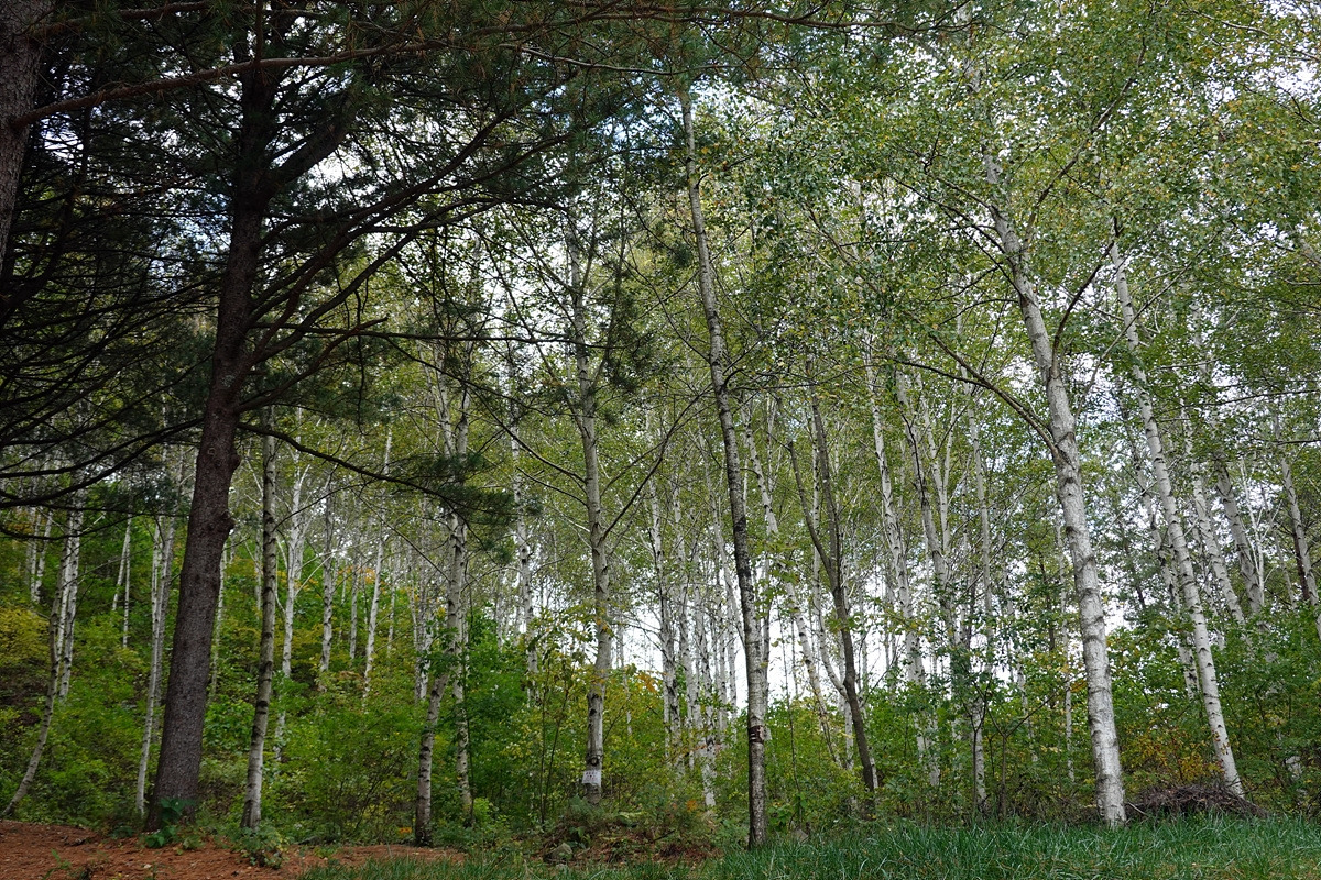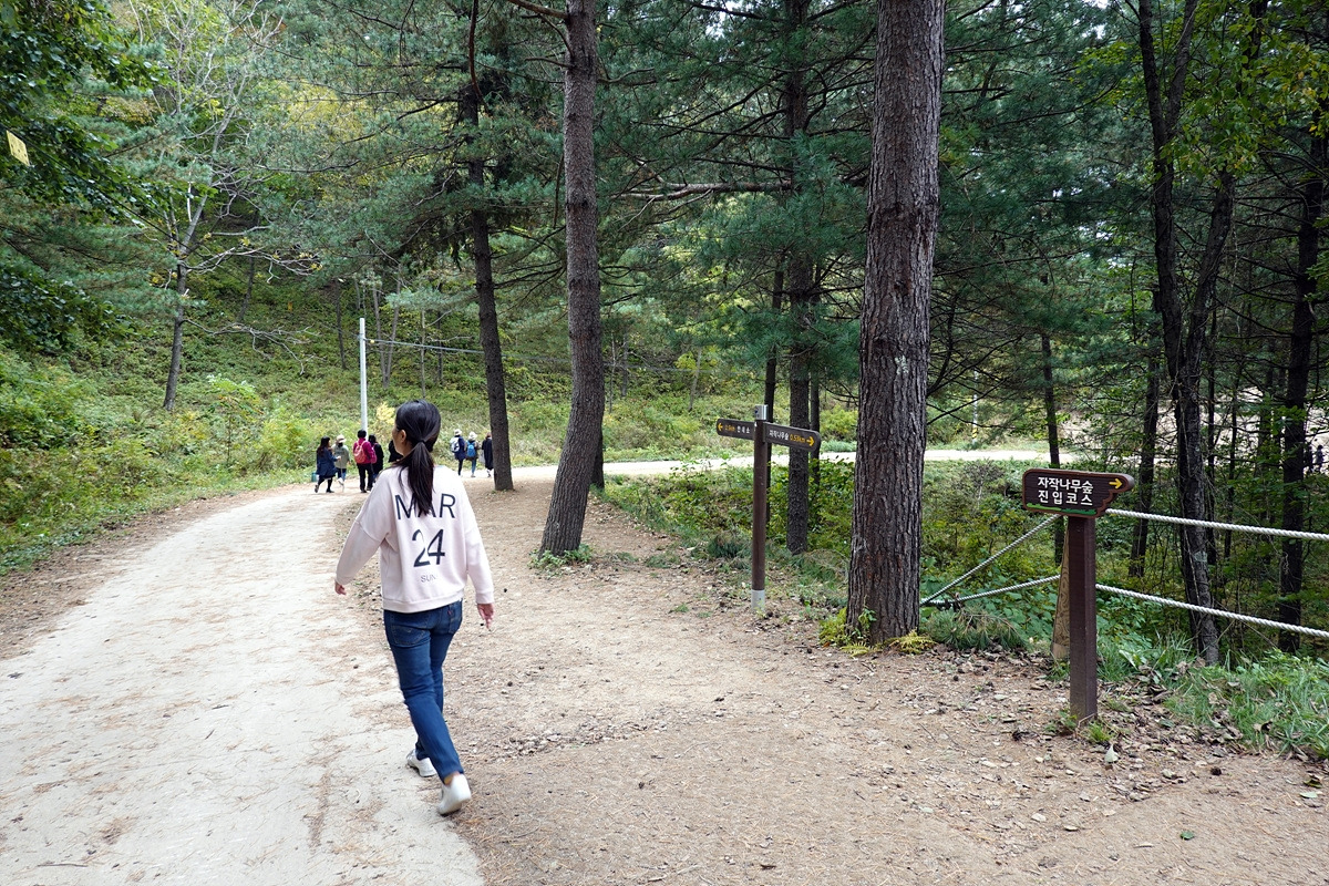 자작나무 숲 입구라지만 바로 자작나무로 가득한 숲이 나타나지는 않는다. 입구는 소나무 숲이다.