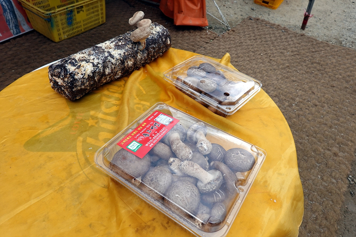 입구에서는 버섯을 파는데 향이 좋다. 주차장 쪽에도 근처 마을에서 재배한 작물들을 판매하고 있다. 주차장에 화장실이 있으니 들렀다가 차를 타고 돌아온다.