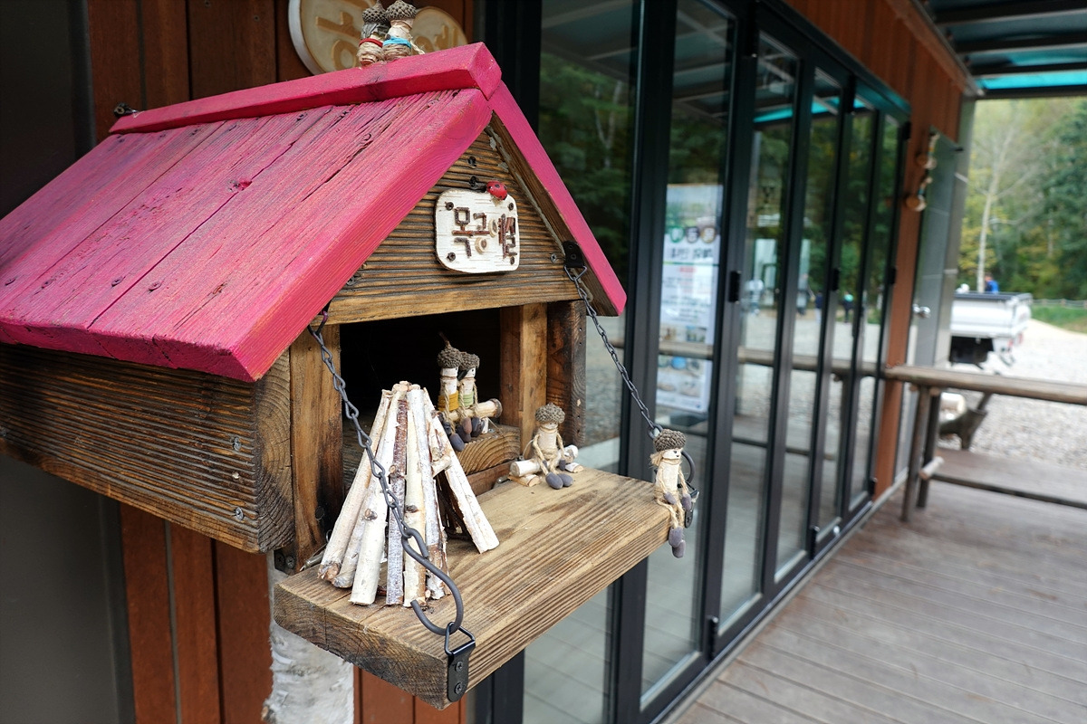 오솔길로 가는 다른 쪽 입구에는 매끈한 자작나무 줄기를 이용한 목공방이 있다.