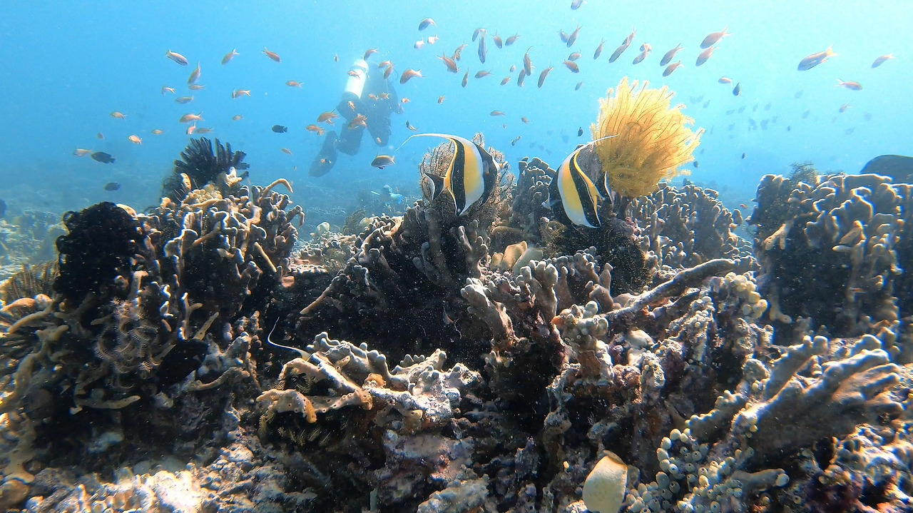 바닷속에 들어가니 넓게 펼쳐지는 산호군락 위로 내려왔다.