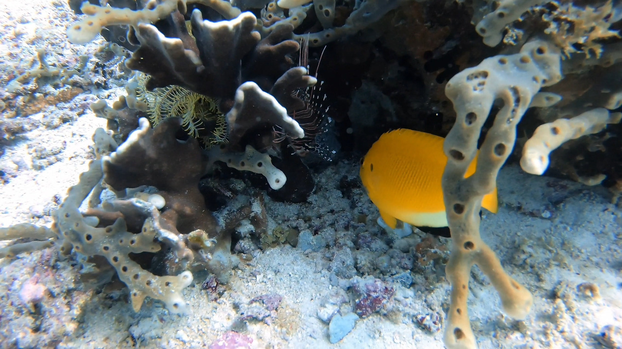삼점박이 엔젤피쉬(threespot angelfish)를 쫓아갔더니 라이언피쉬가 숨어있었다.