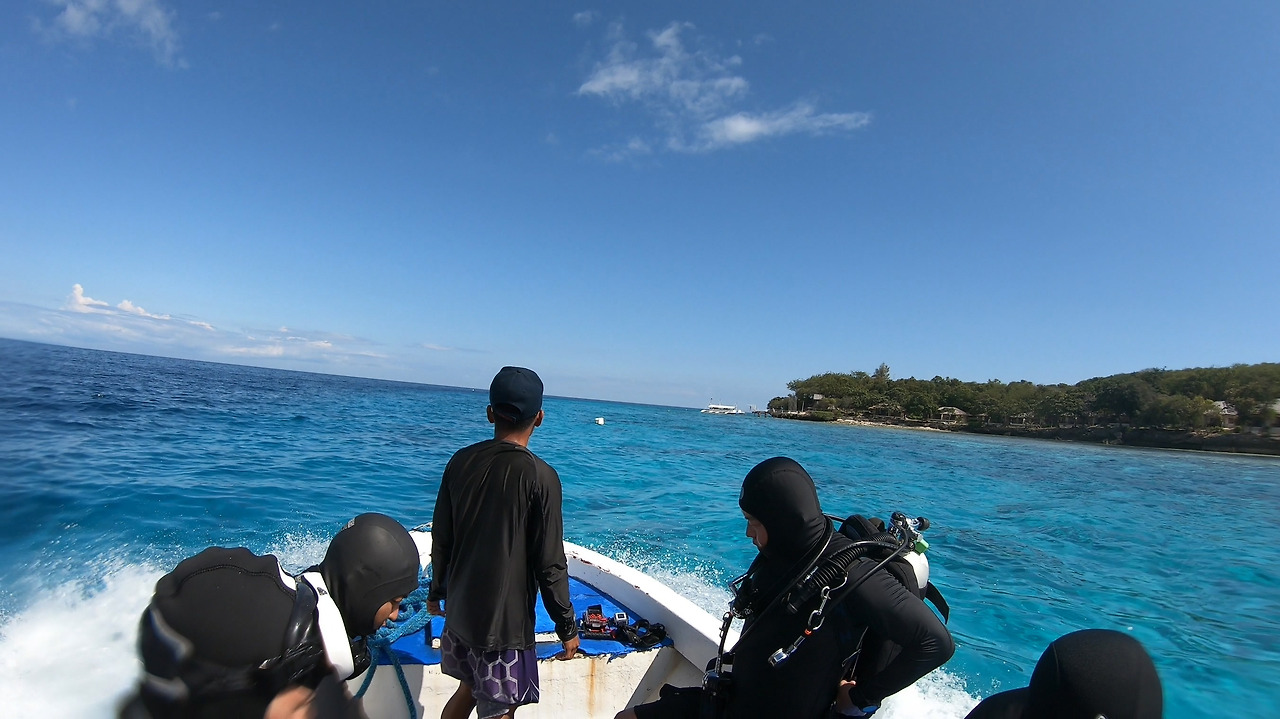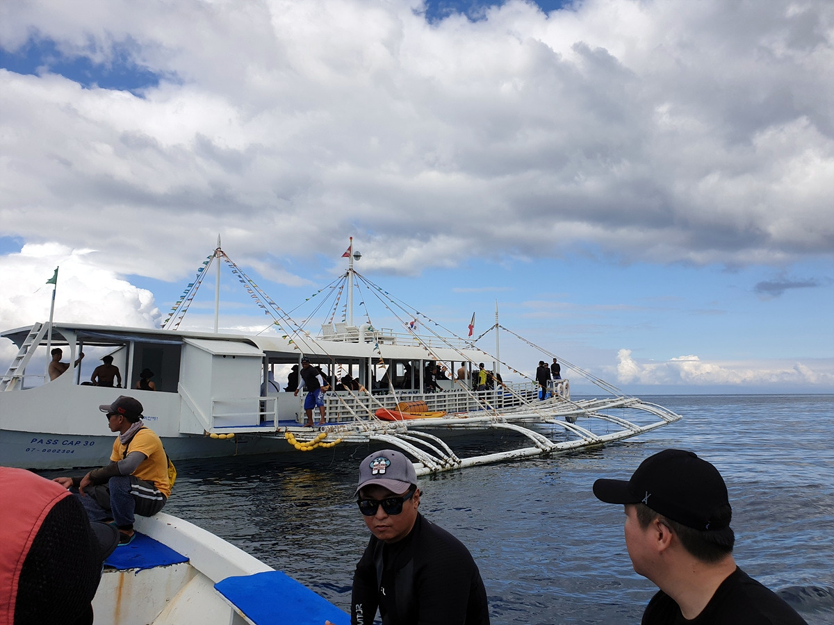 배 위에서 어느 정도 쉰 후에, 이번에는 소그룹을 나눠서 보트로 이동해서 입수하기로 한다. 지니님은 방카가 높아서 보트에서 입수하는 게 더 좋다고 한다.