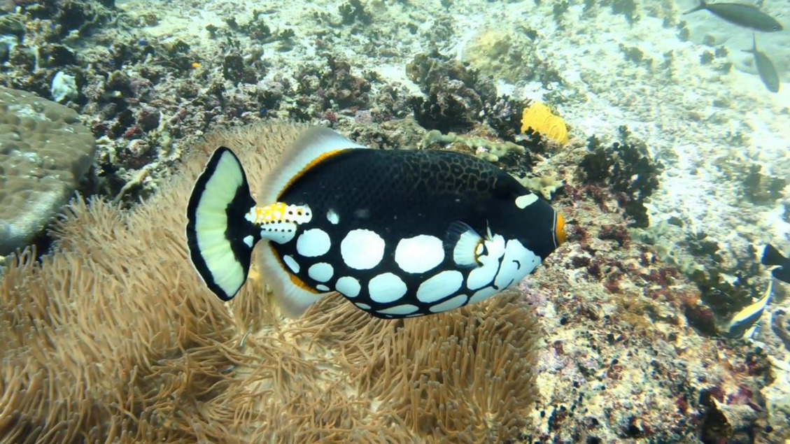 종종 눈에 띄는 Clown triggerfish가 보인다. 타이탄 트리거피쉬보단 크기도 작고 화려해서 덜 징그럽다. 아니, 이 정도면 이쁜 녀석이라 해야지.