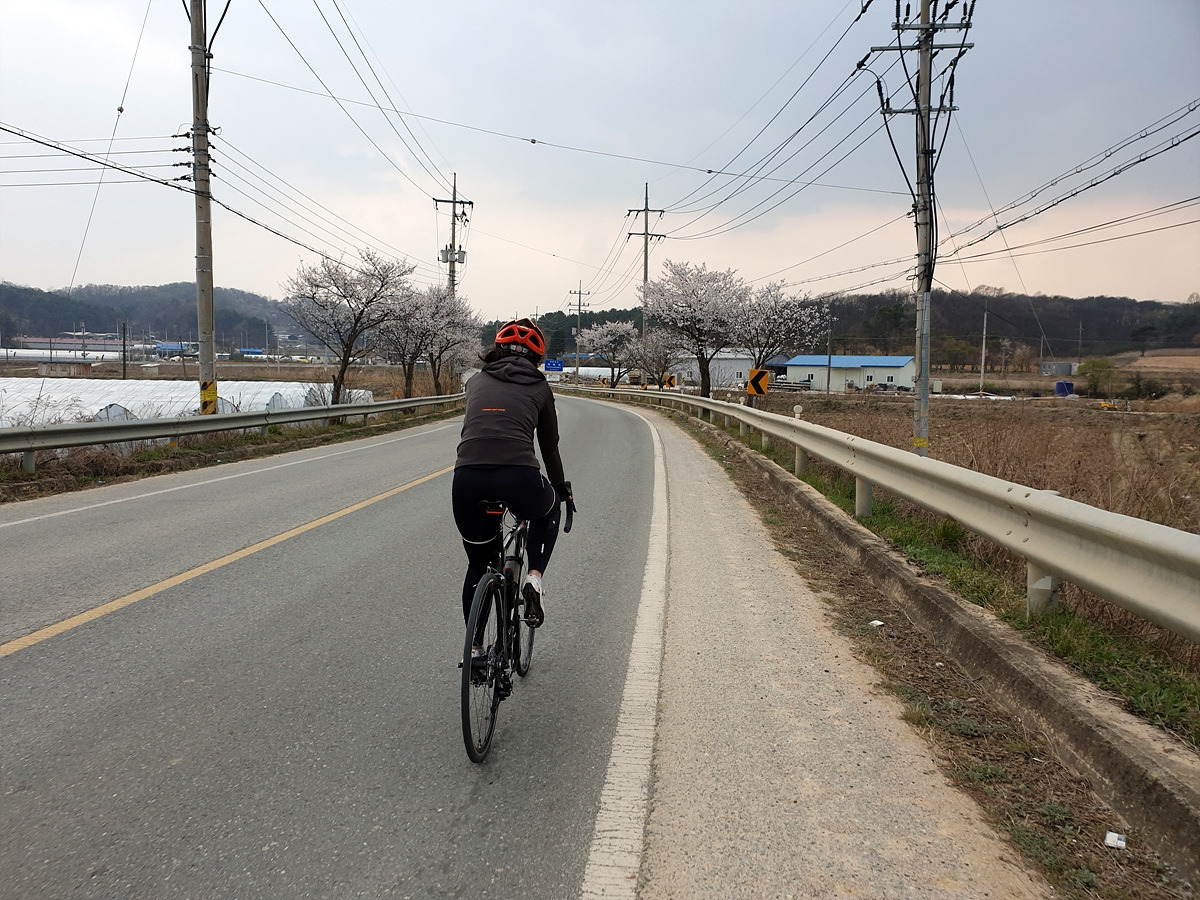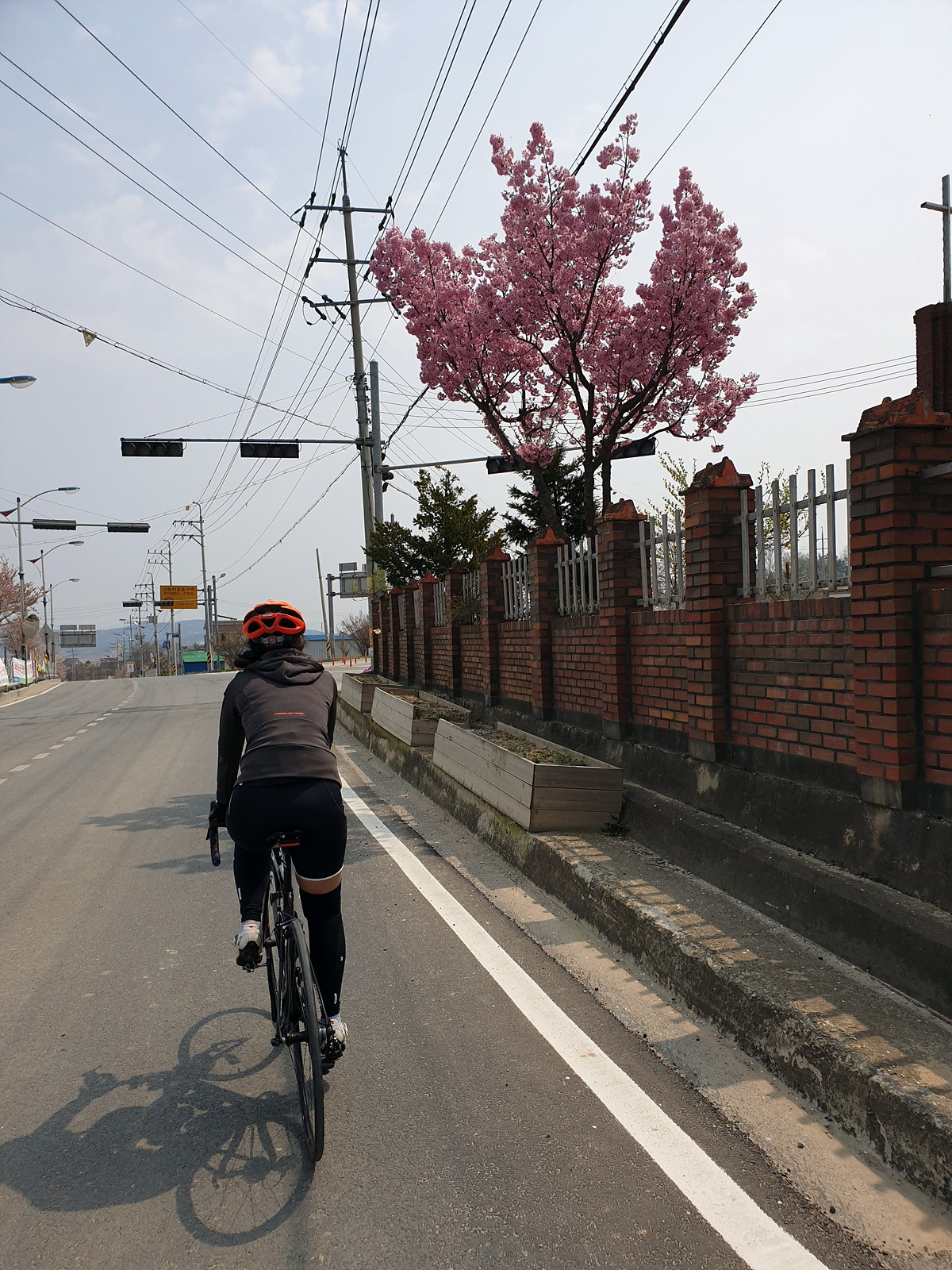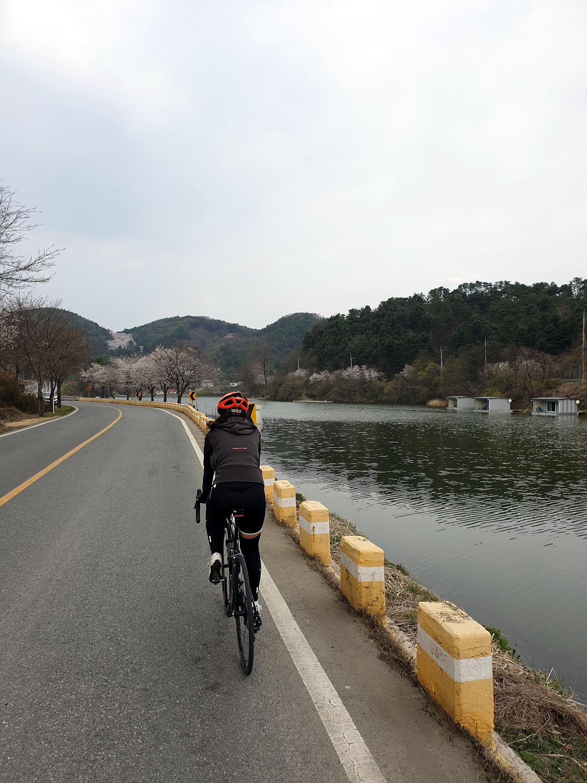 날이 흐려서 그런지 하늘은 빨리 어두워지는데 벚꽃은 딱 지금 만개했다. 기대하지 않고 나선 자전거 여행길에 벚꽃을 원 없이 보는 것 같다.