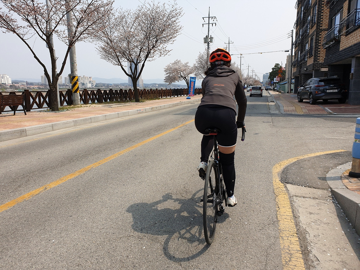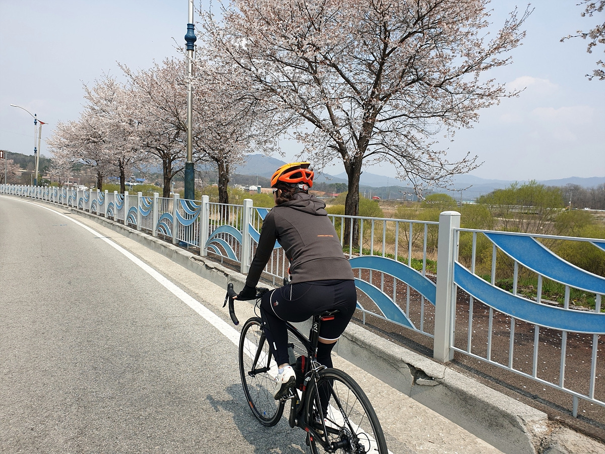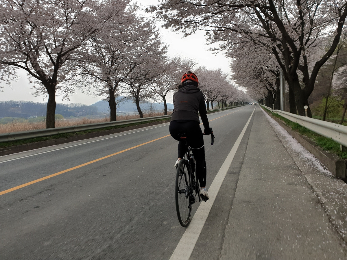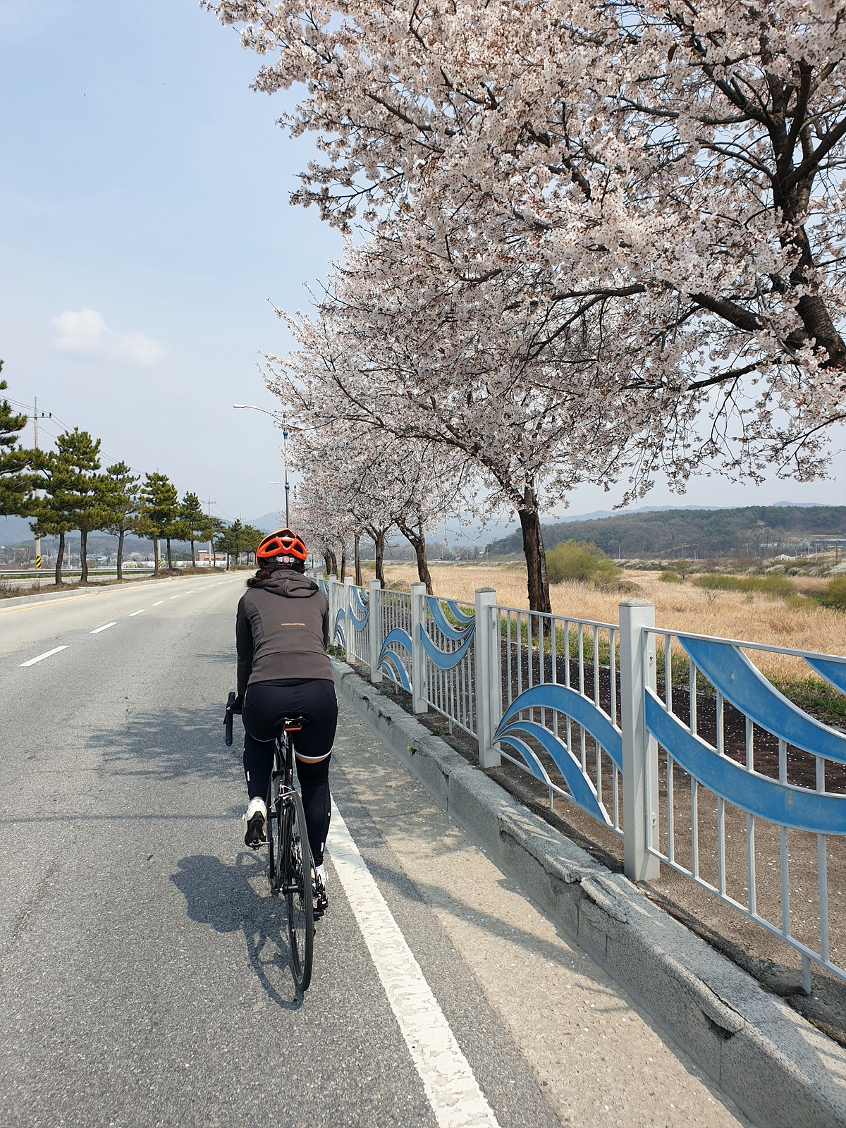 날이 흐려서 그런지 하늘은 빨리 어두워지는데 벚꽃은 딱 지금 만개했다. 기대하지 않고 나선 자전거 여행길에 벚꽃을 원 없이 보는 것 같다.
